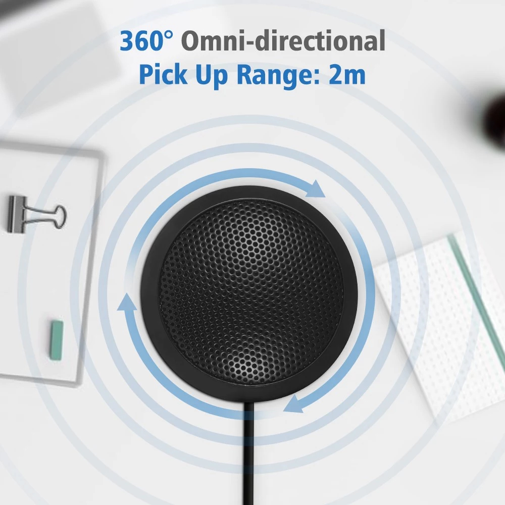 Kann Hintergrundgeräusche, klares Audio, omnidirektionale 360-Grad-Aufnahme effektiv reduzieren, die Tonreichweite beträgt ca. 2 m und ist für kleine Besprechungen mit 4 bis 6 Personen geeignet.