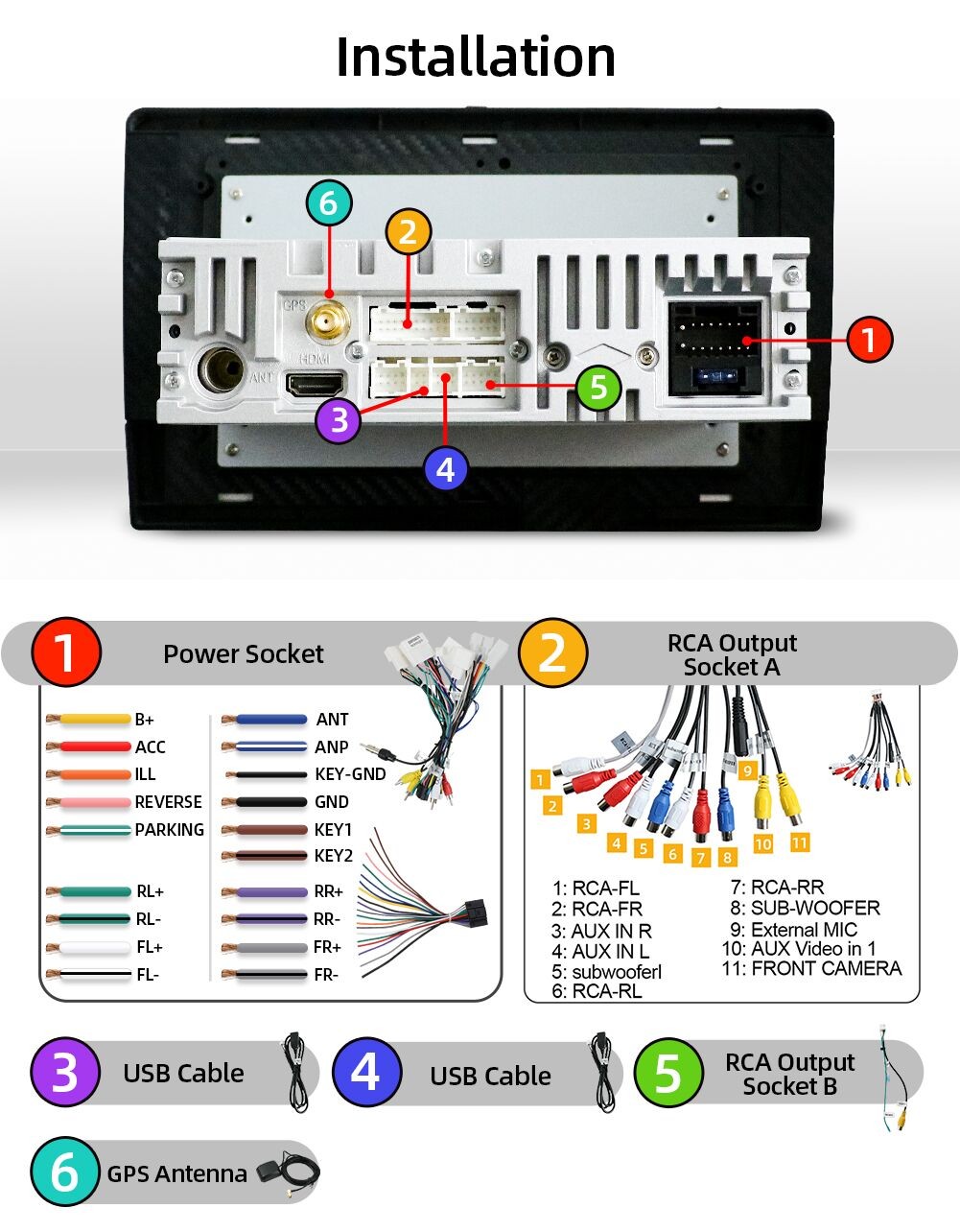 ● 4 x Audioausgänge 1 x AUX A/V-Eingang 1 x Videoeingang,1x Subwoofer und USB Port