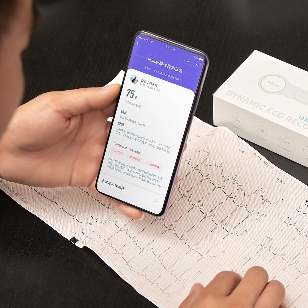 Das intelligente dynamische EKG-Instrument HiPee ist ein Medizinprodukt vom Typ II, das von der National Medical Products Administration zertifiziert wurde. Es kann die EKG-Bilder 24 Stunden lang aufzeichnen und versteckte Risiken für die Herzgesundheit rechtzeitig erkennen.