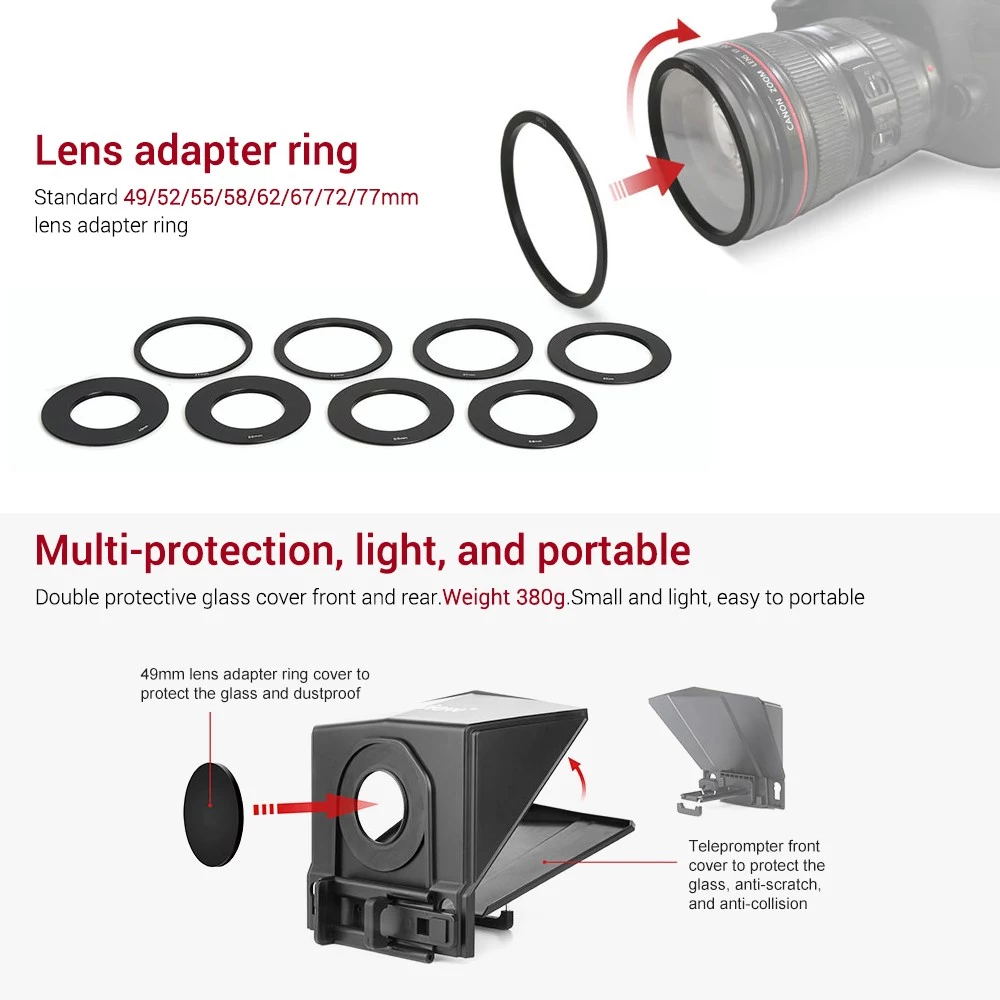 Der Teleprompter eignet sich für Sprache, Live-Interview, Live-Streaming, Vlog und andere Aktivitäten.
