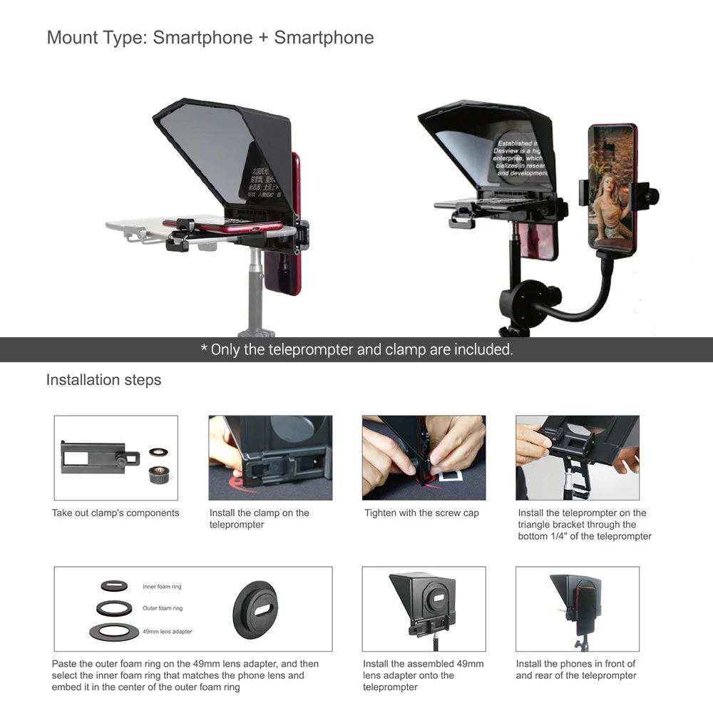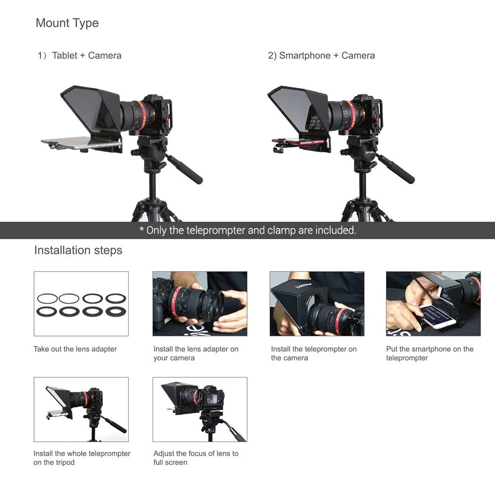 Bestview T2 Smartphone / Tablet / DSLR-Kamera Teleprompter Prompter