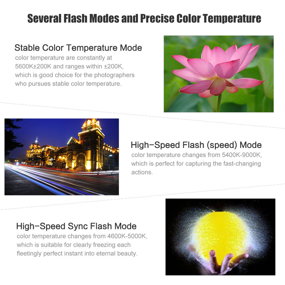 Blitzdauer: 1 / 28984s-1 / 316s (Hss), 1 / 4246s-1 / 316s (stabiler Modus)