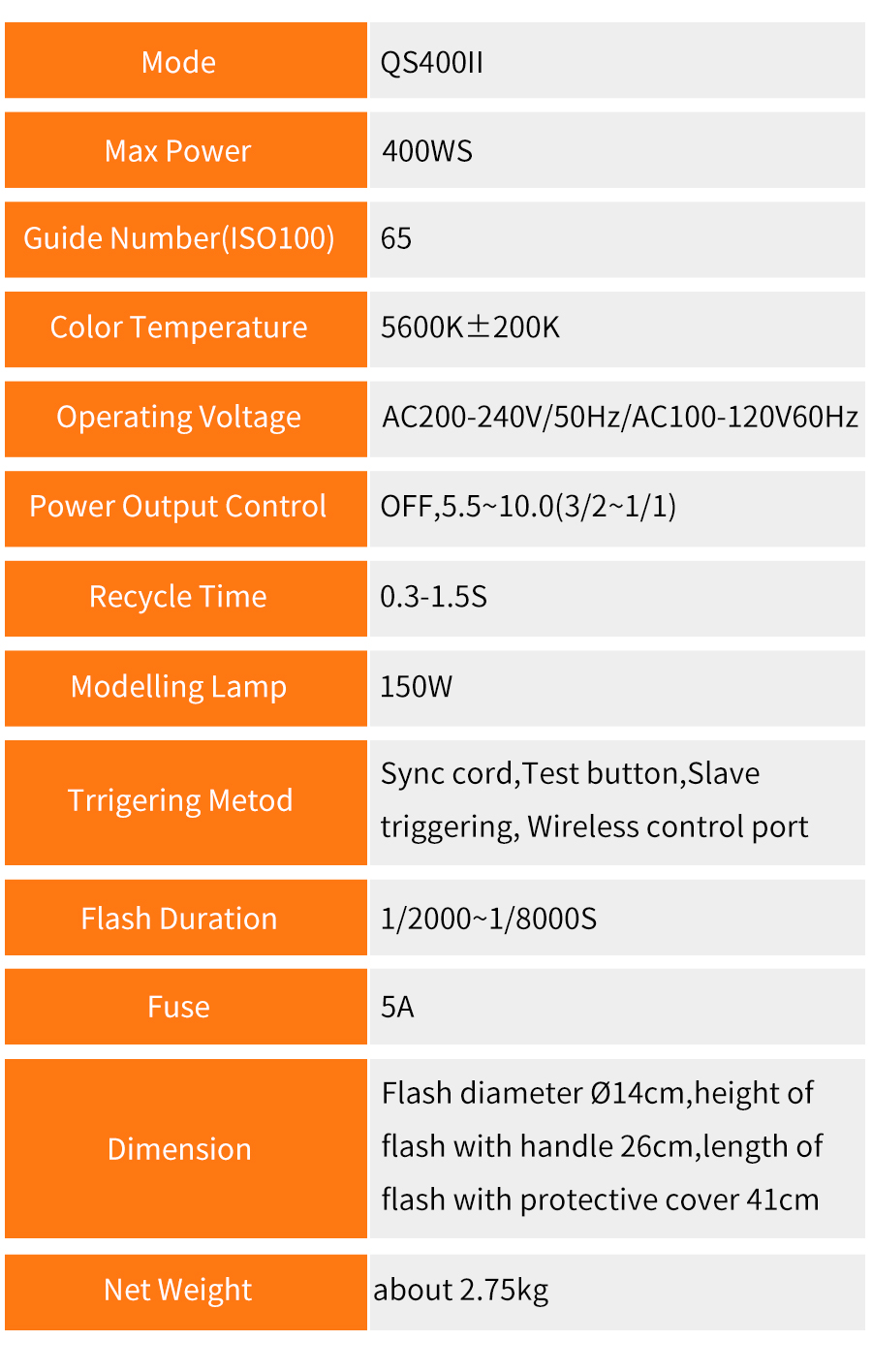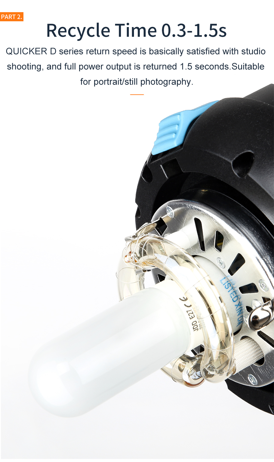 - Die QSII-Serie bietet 0,3 bis 1,5 s Recycling und 1/800 bis 1/2000 s Blitzdauer.
