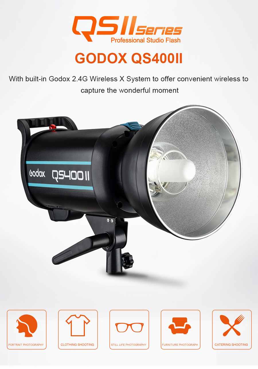 - 1 x Godox QS-400II Studioblitz