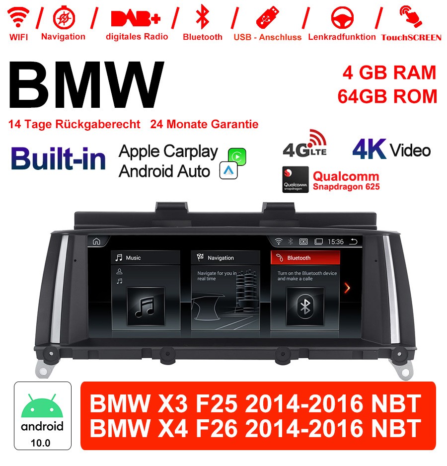 8.8 Zoll Qualcomm Snapdragon 625 8 Core Android 12.0 4G LTE Autoradio / Multimedia BMW X3 F25 2014-2016 NBT BMW X4 F26 2014-2016 NBT