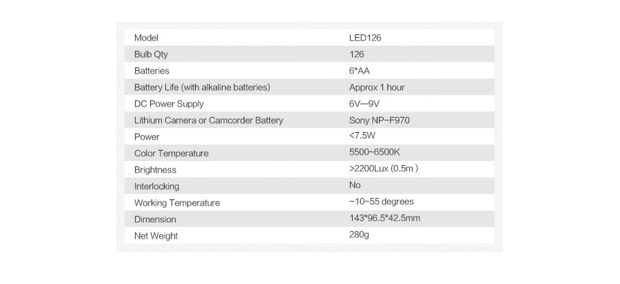 Godox LED126haben mehr perlen hellere beleuchtung zu fit verschiedenen schießen umgebungen. es kommt mit einem diffusion filter und eine gelbe filter, und auch unterstützt mehrere stromversorgung modi. sie können flexibel steuern die licht helligkeit mit der dimmer und ändern die beleuchtung richtung mit der winkeleinstellmechanismus knöpfe.