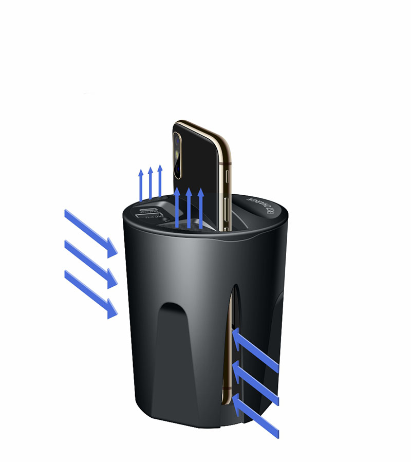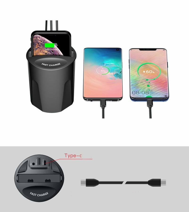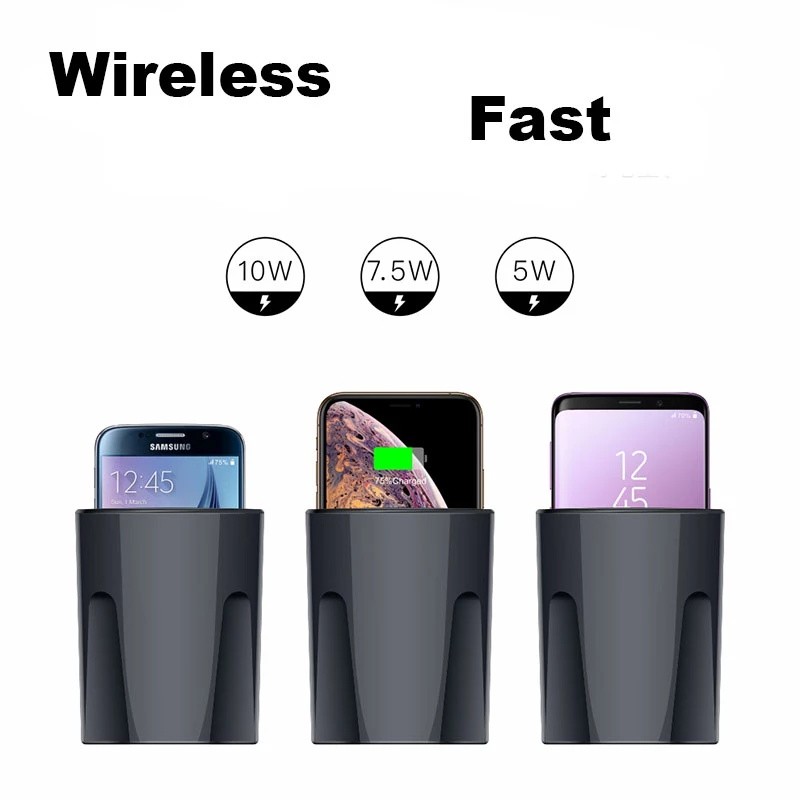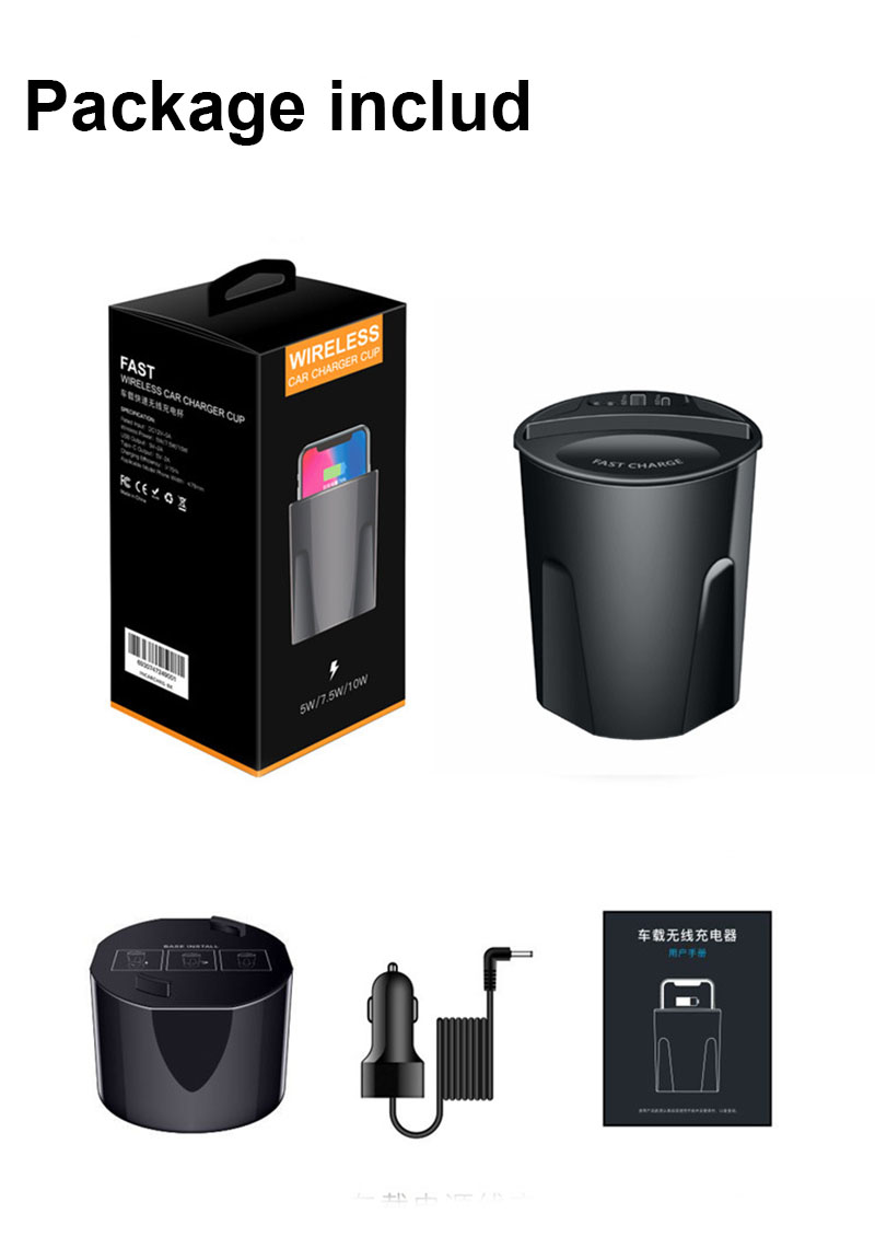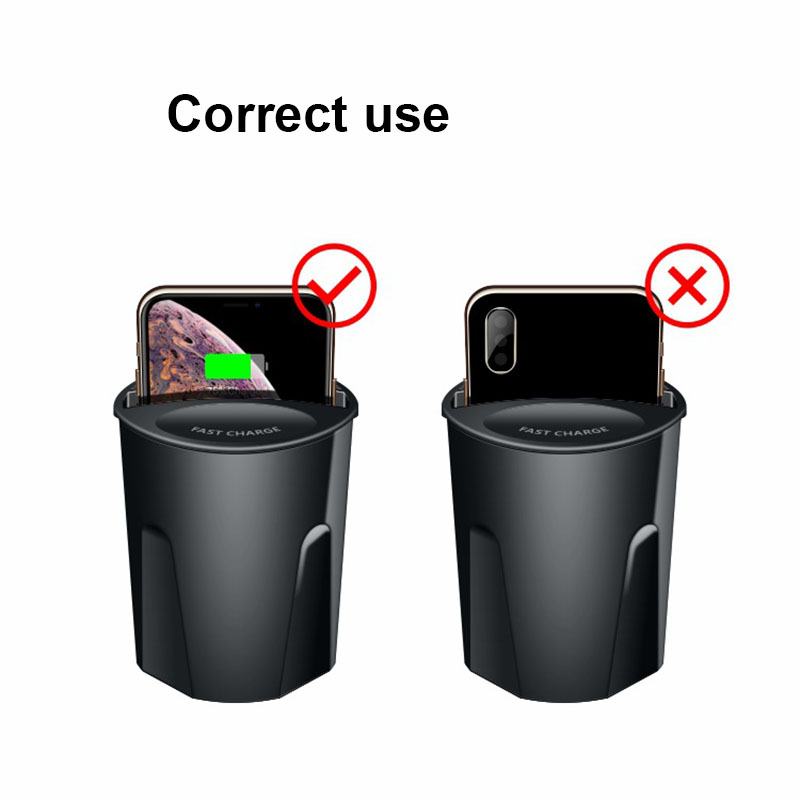 QI auto drahtlose lade tasse verwendet WPC QI standard wireless lade schnell lade technologie, unterstützt 10 W, 7,5 W, 5 W drahtlose aufladen, stabile und schnelle lade, kombiniert mit die auto vorbehalten tasse loch design, tasse-förmigen aussehen, gut integriert in die auto innen umwelt.