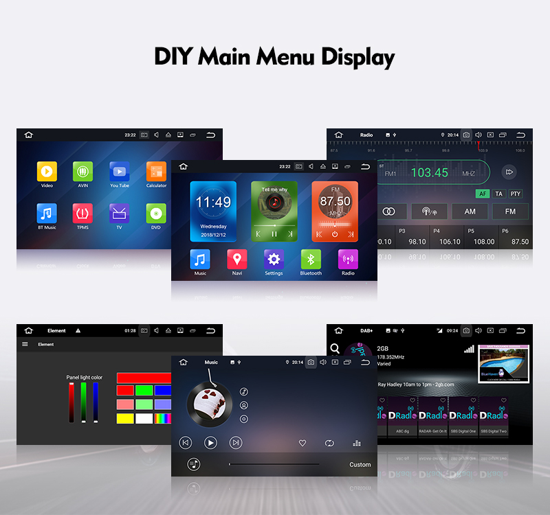 - DIY Hauptmenü display: Ja, Sie können Suchleiste, Musik/Radio/BT- Stereo Player oder Apps auf Hauptmenü ziehen