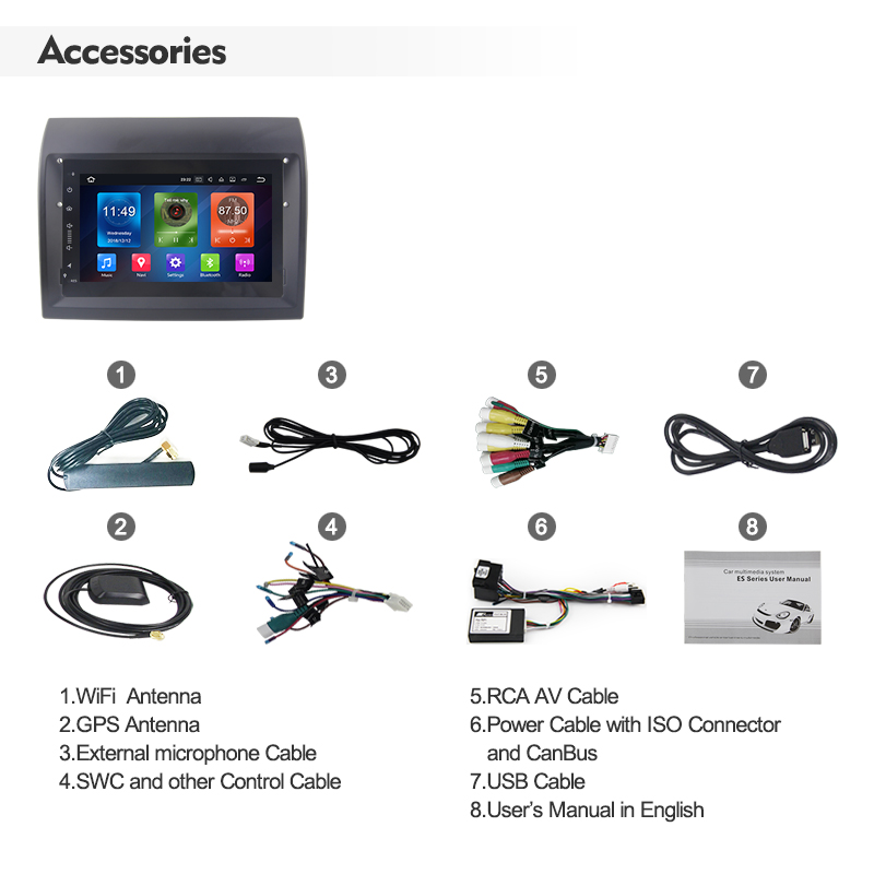 - Position: 3 USB auf dem Rücken, kann als Media/3G/4G/Kamera/DAB+/TPMS/Handy Anschluss
