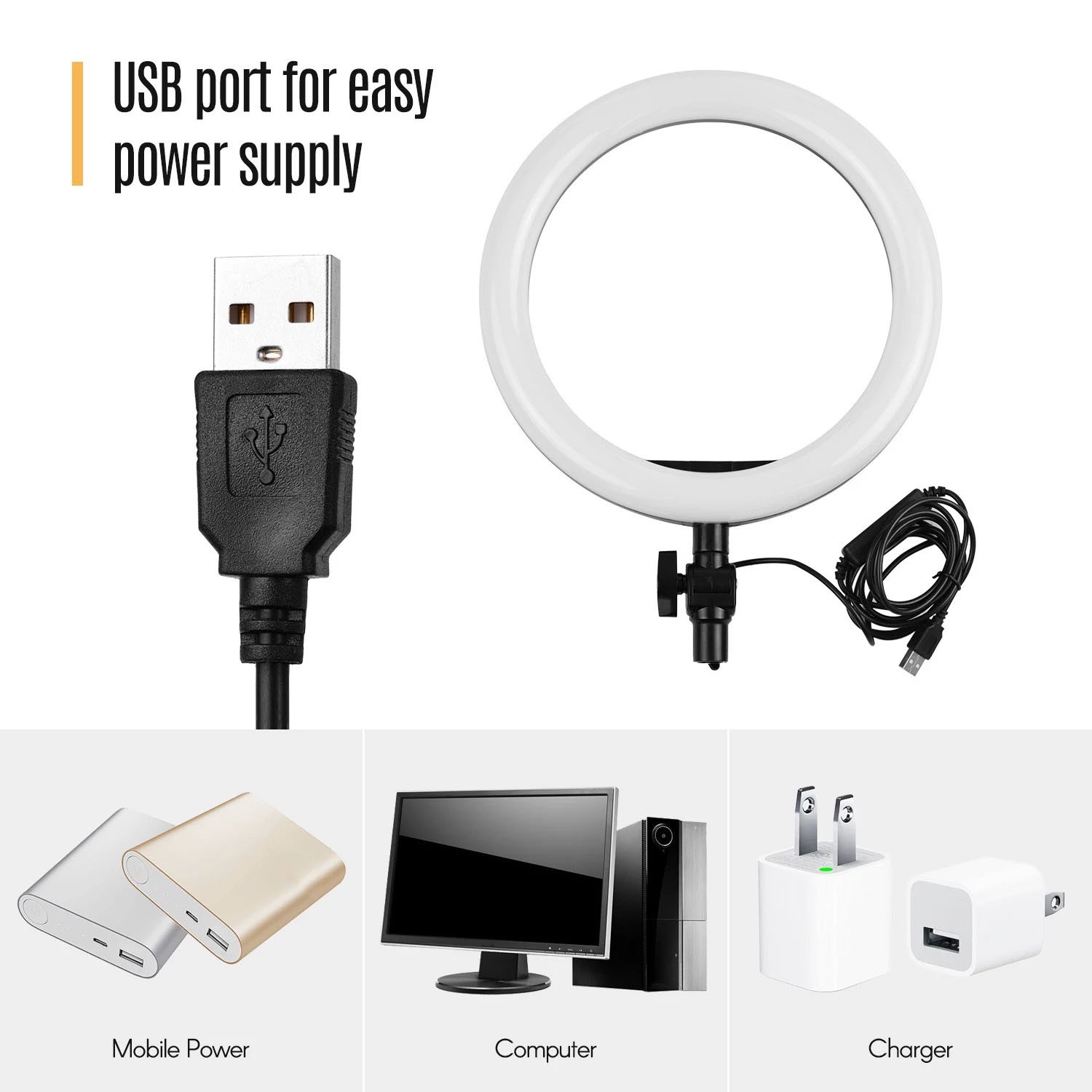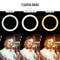 26 cm LED-Ringlicht-Fotolampe Dimmbar 3 Beleuchtungsmodi USB-Stromversorgung mit flexiblem Lichtständer Telefonhalter Fernauslöser für YouTube Live-Video