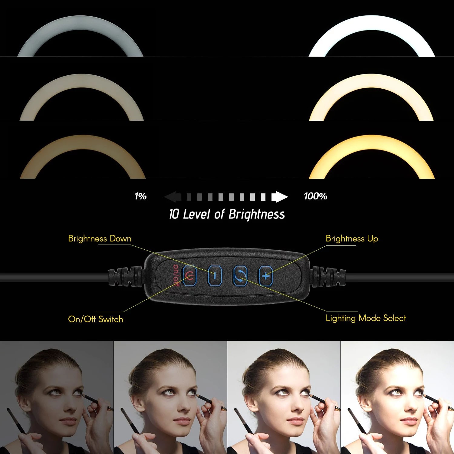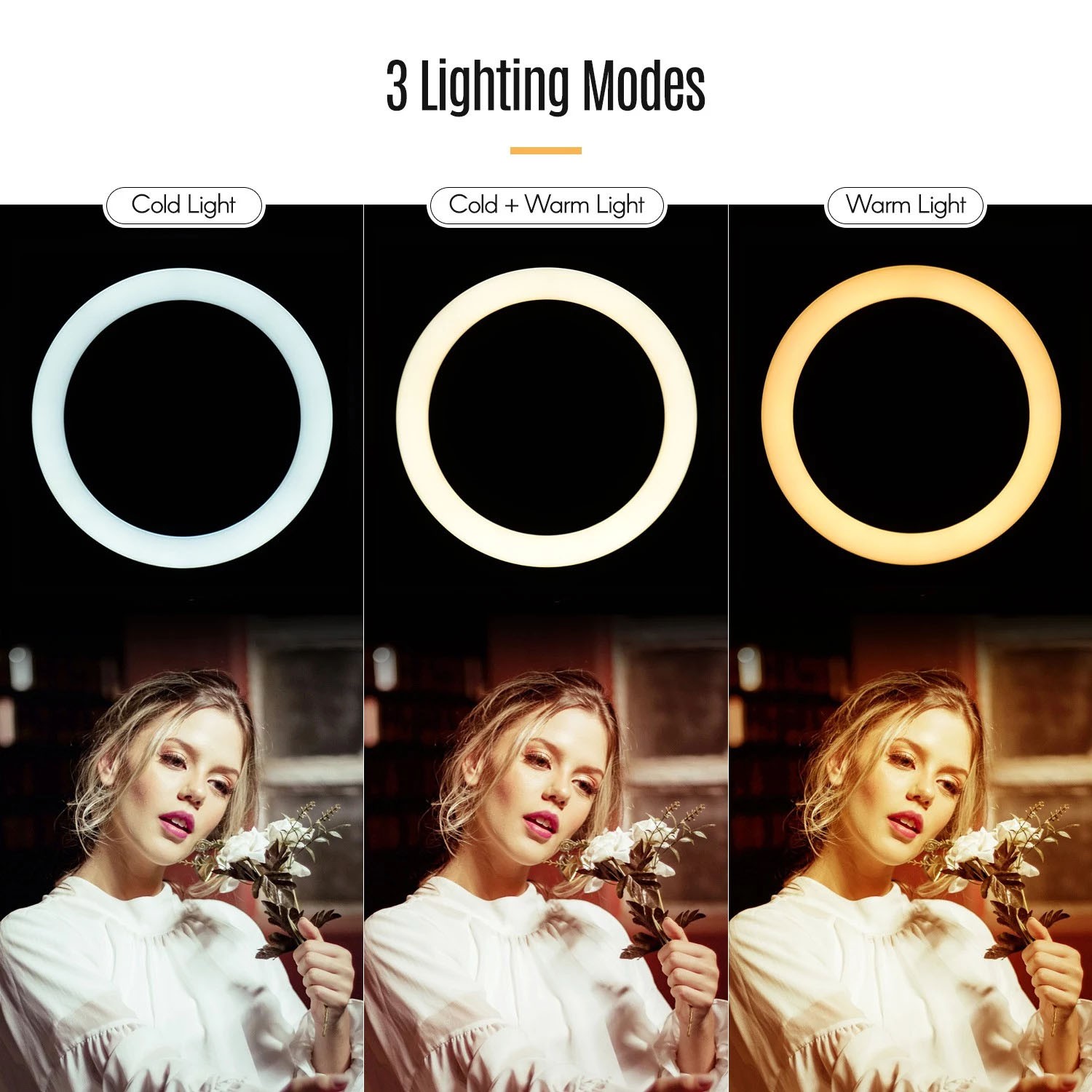 3 Beleuchtungsmodi (warmes Licht / warm + kaltes Licht / kaltes Licht) und 10 einstellbare Helligkeitsstufen erfüllen alle Ihre Anforderungen an verschiedene Lichteffekte.