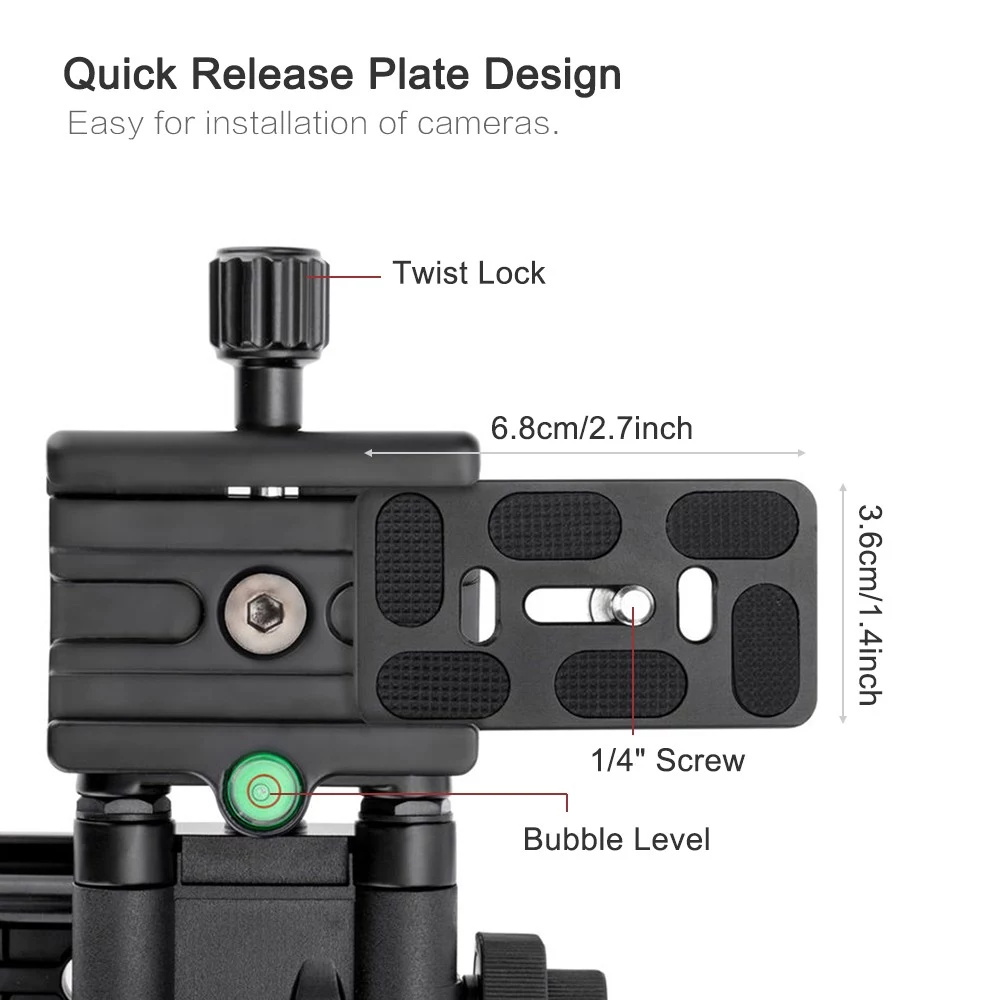 Mit 1/4 Zoll Schraube auf der Schnellwechselplatte, geeignet für die meisten Kameras, z. B. Nikon Canon Sony Pentax Olympus Panasonic DSLR-Kamera, einfach zu installieren.