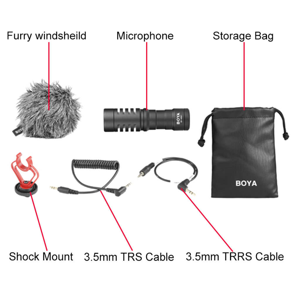 Die BOYA BY-MM1 ist eine nieren mikrofon, die speziell design zu verbessern die klang qualität von videos auf der grundlage von build-in mikrofone. Mit sowohl TRS kabel und TRRS ausgang kabel enthalten, es können verwendet werden auf Smartphones, kameras, camcorder, audio recorder, PCs, und andere audio/video aufnahme geräte. BOYA BY-MM1 kommt heraus in kompakte größe und licht-gewicht aluminium-design, es wird nicht werden eine schwere belastung während schießen. Stecker und spielen design, keine notwendigkeit, die batterie status. Die enthalten anti-shock mount effektiv reduziert unerwünschte vibration, kabel und handhabung lärm.