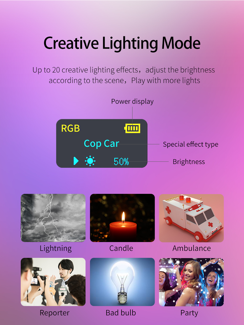 5. kreativer Beleuchtungsmodus, bis zu 20 kreative Lichteffekte.