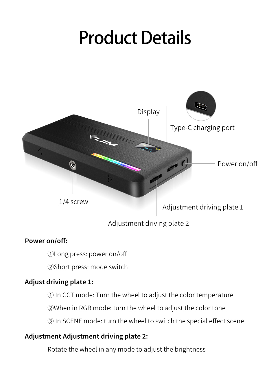 1.ultra-breite Farbtemperatur 2500K-9000K, breites Farbband, das frei kontrolliert werden kann.