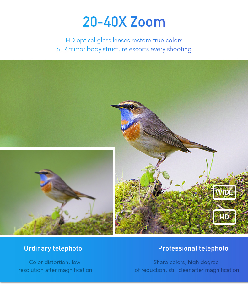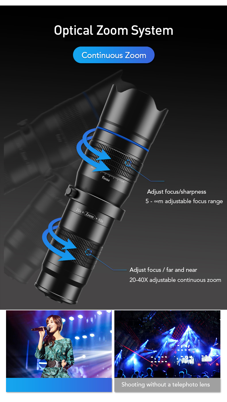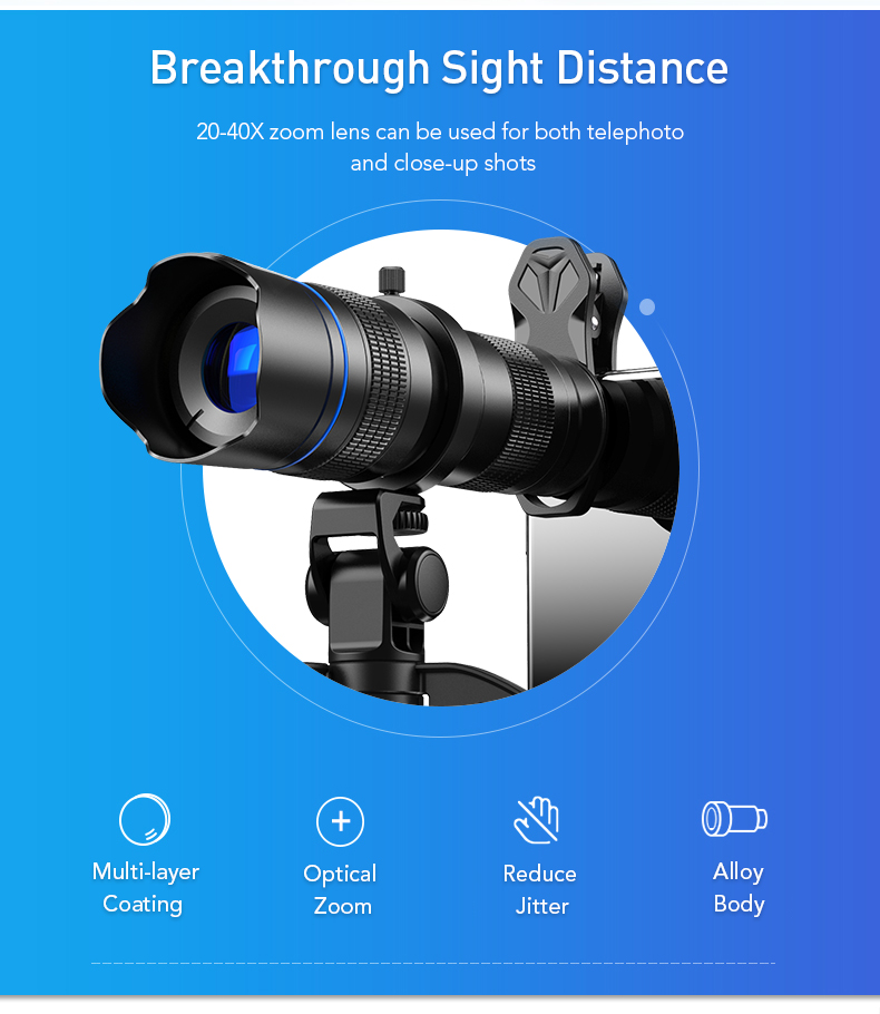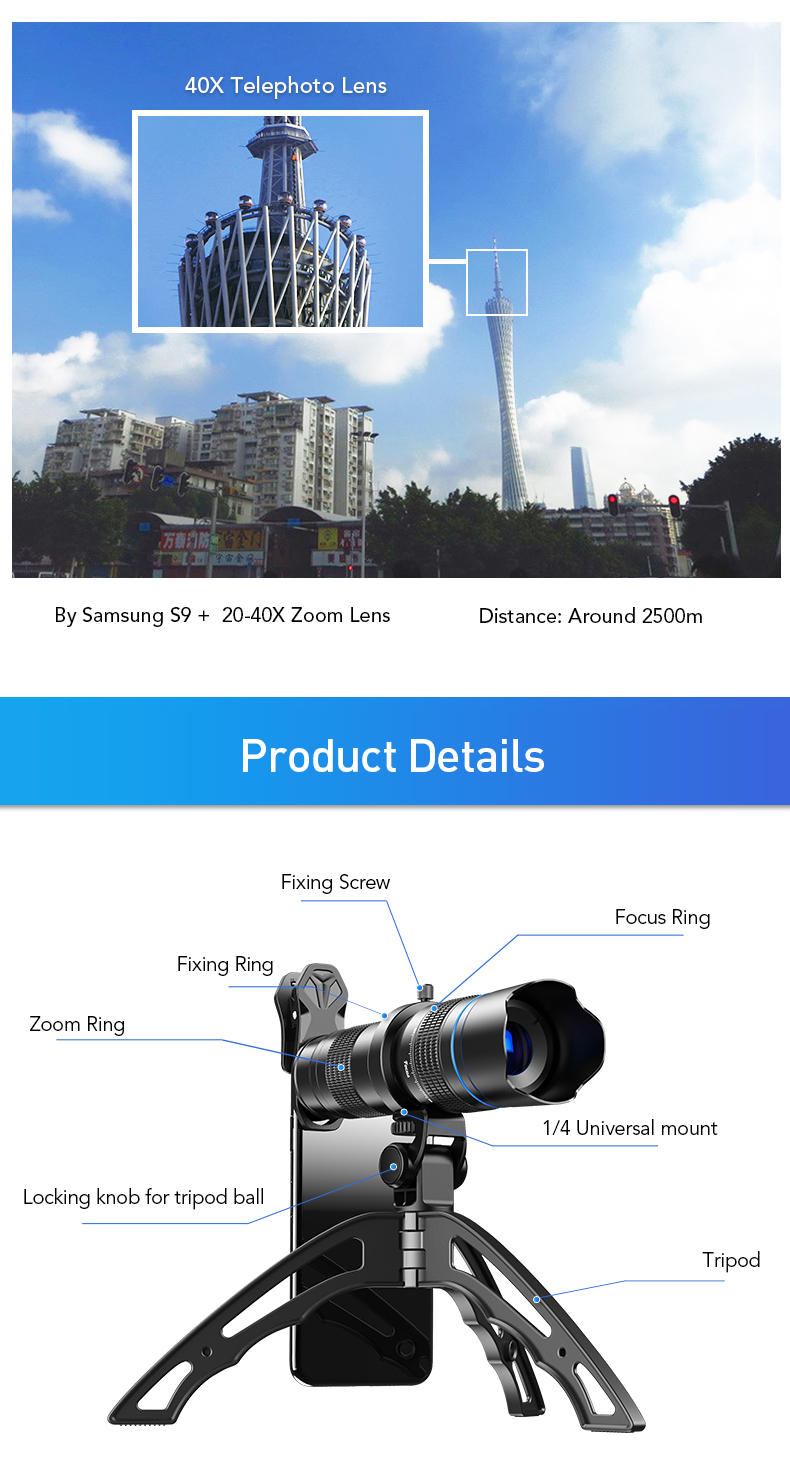 Dies ist eine neue entwickelt hohe qualität optische 20-40X teleskop zoom objektiv mit mini stativ, erfüllt ihre verschiedenen bedürfnisse der fotografie.