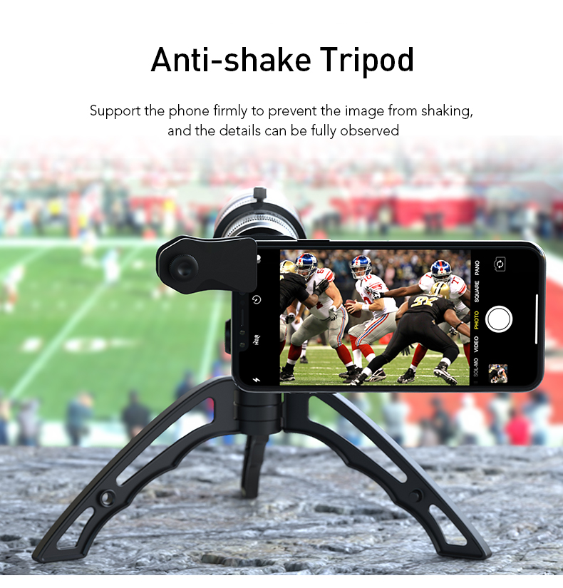 RÜCKSICHTS DESIGN MIT STABILEN STATIV: dieses handy teleobjektiv kommt auch mit eine ausgewogene stativ und die stativ kann ein selfie stick.