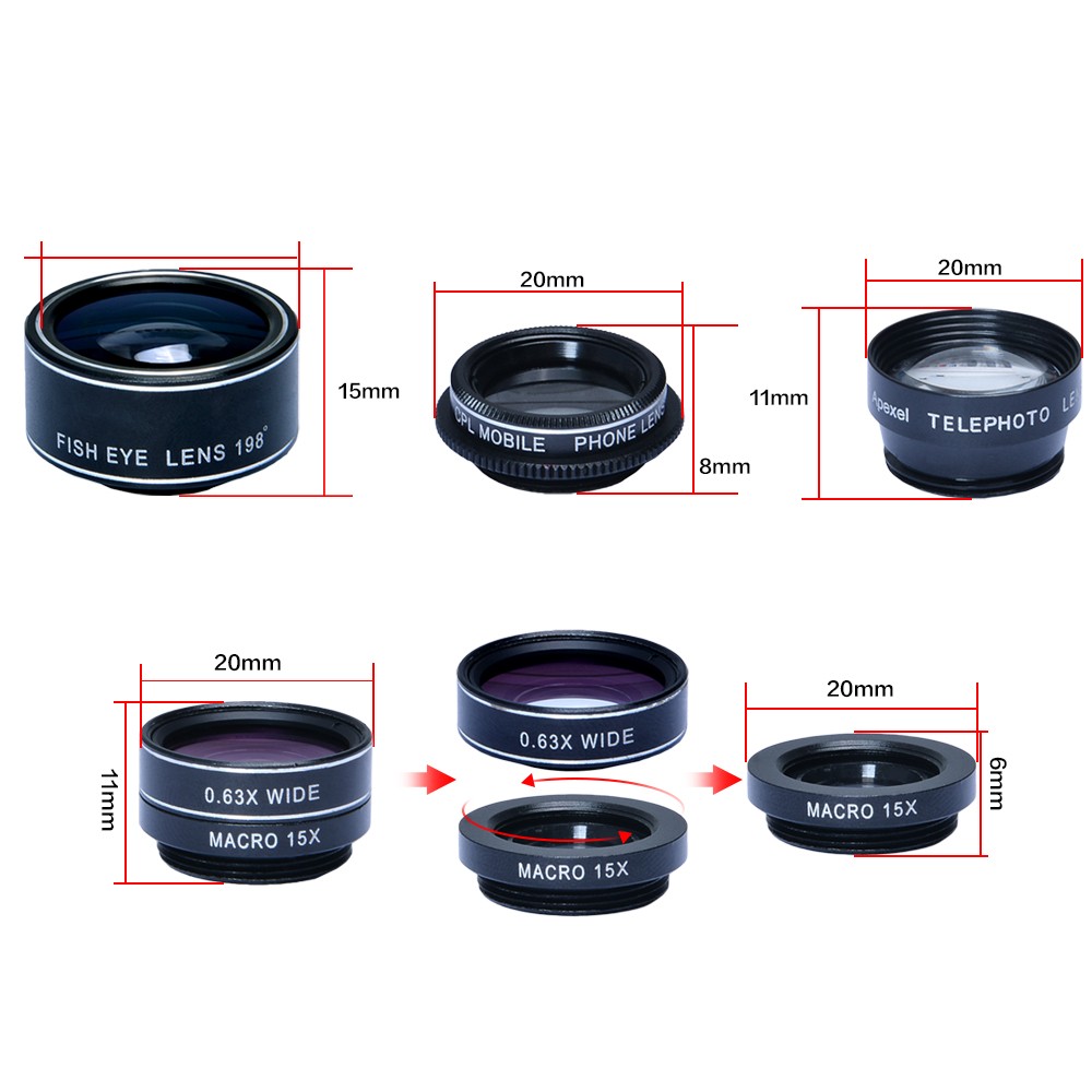 Kindly Anmerkung: die makro objektiv und weitwinkel objektiv sind geschraubt zusammen, sie müssen schrauben sie es zu erhalten zwei linsen!