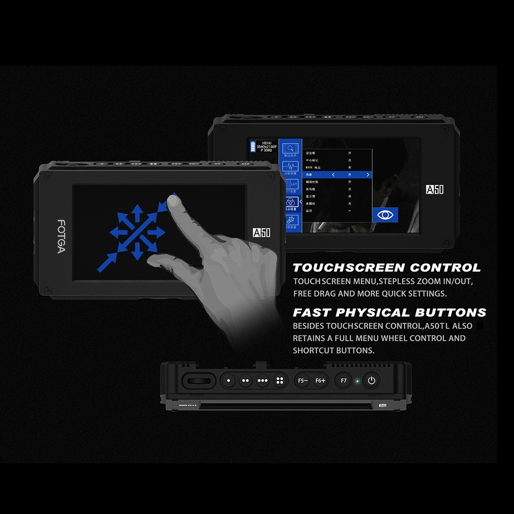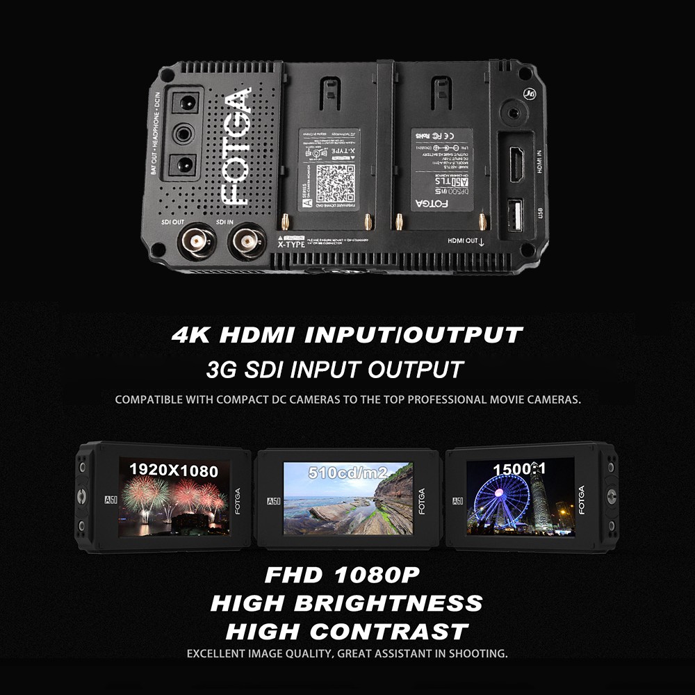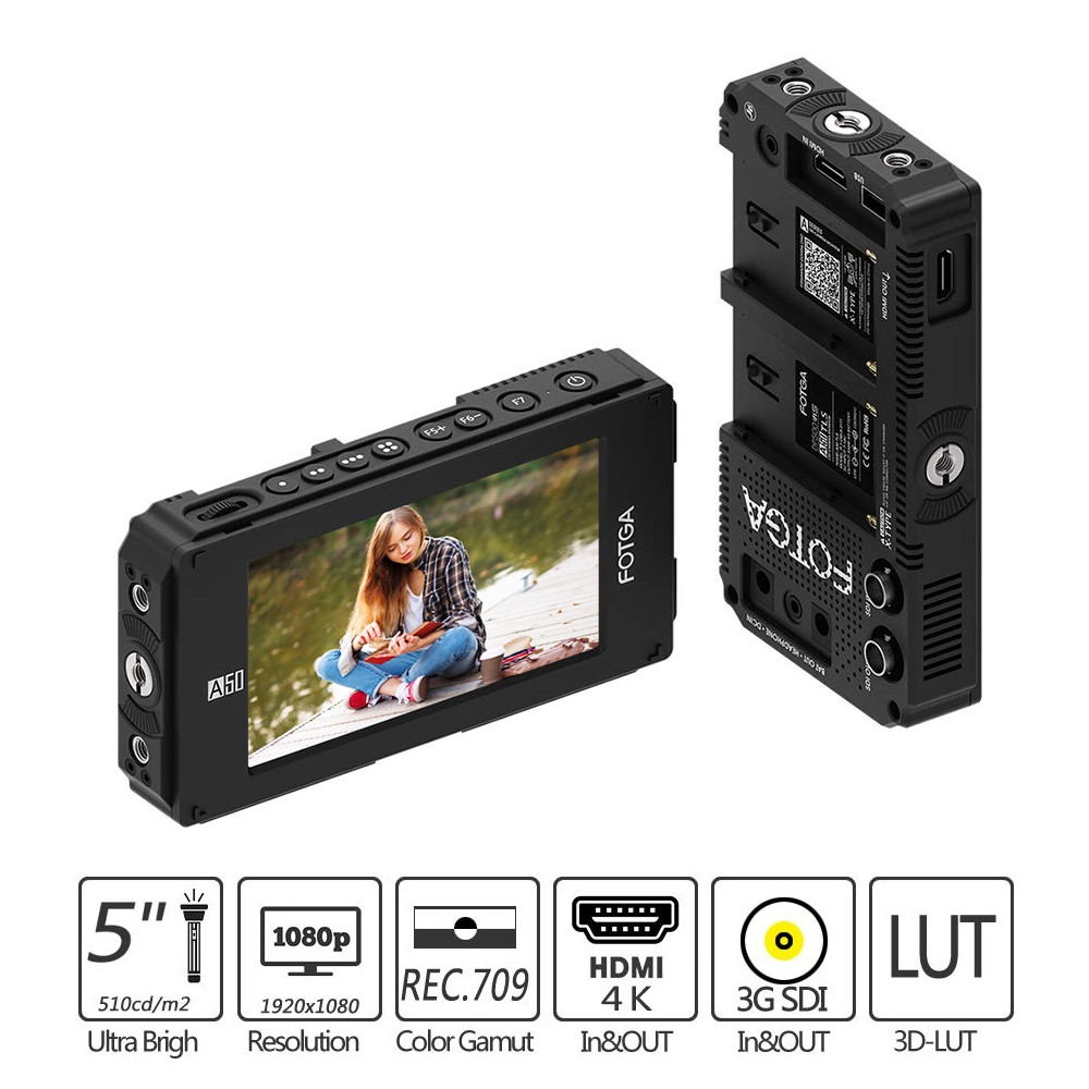 Fotga ist immer versuchen beste zu bieten professionelle und hilfreich unterstützen werkzeuge für nutzer filmmakings, und hilft kunden zu machen aus wunderbare arbeitet. Fotga A50TLS feld monitor ist speziell für alle DSLR kameras, und unterstützt mehrere funktionen, wie histogramm, peaking filter, falsche farben, zebra exposition, FHD, embedded audio, pixel-to-pixel, überprüfen bereich, bild flip, anamorph, bild einfrieren, zoom-in, etc.