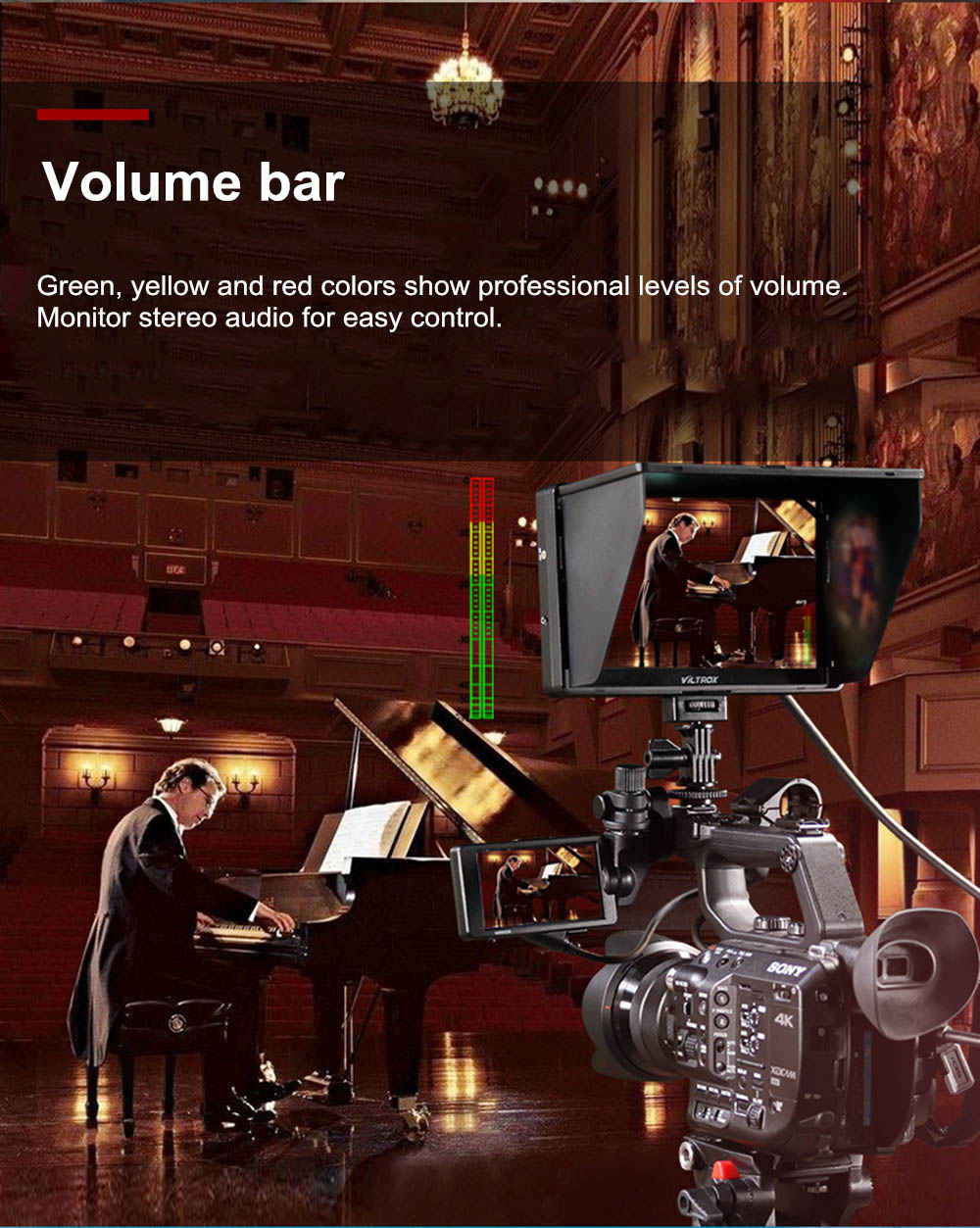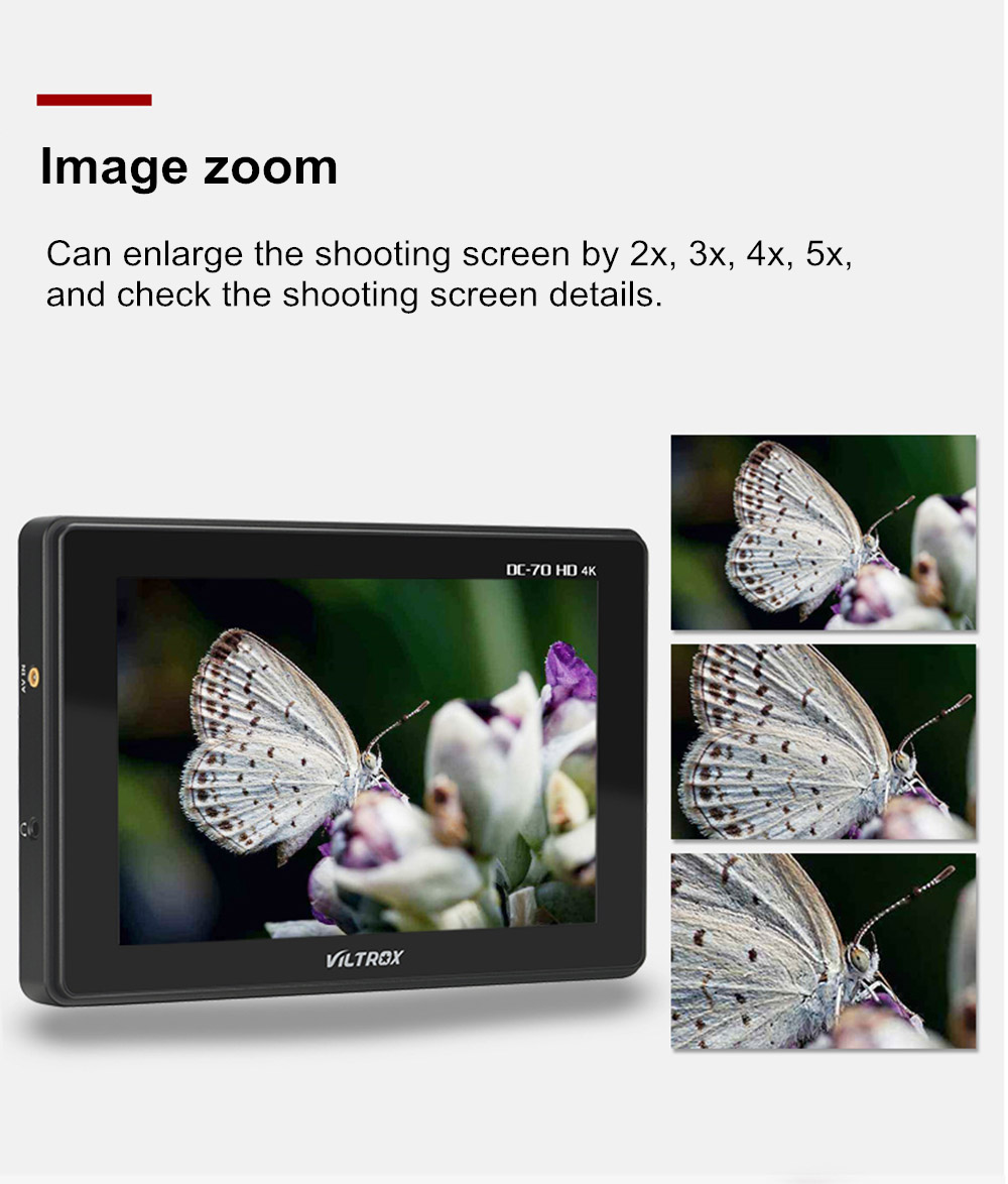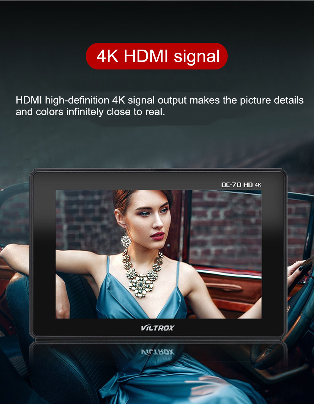 Es kann HDMI-Videoausgang von der Kamera anzeigen, unterstützt 4K UHD 3840 x 2160p Signaleingang.