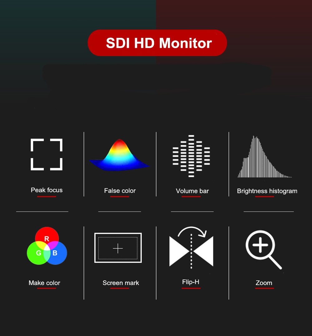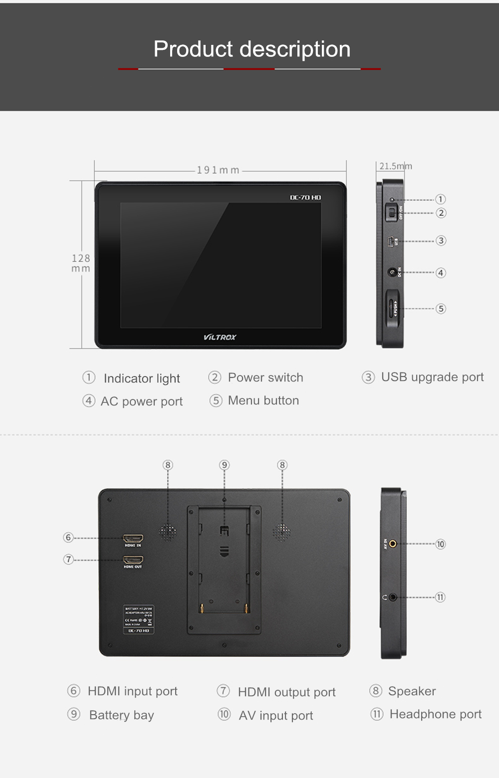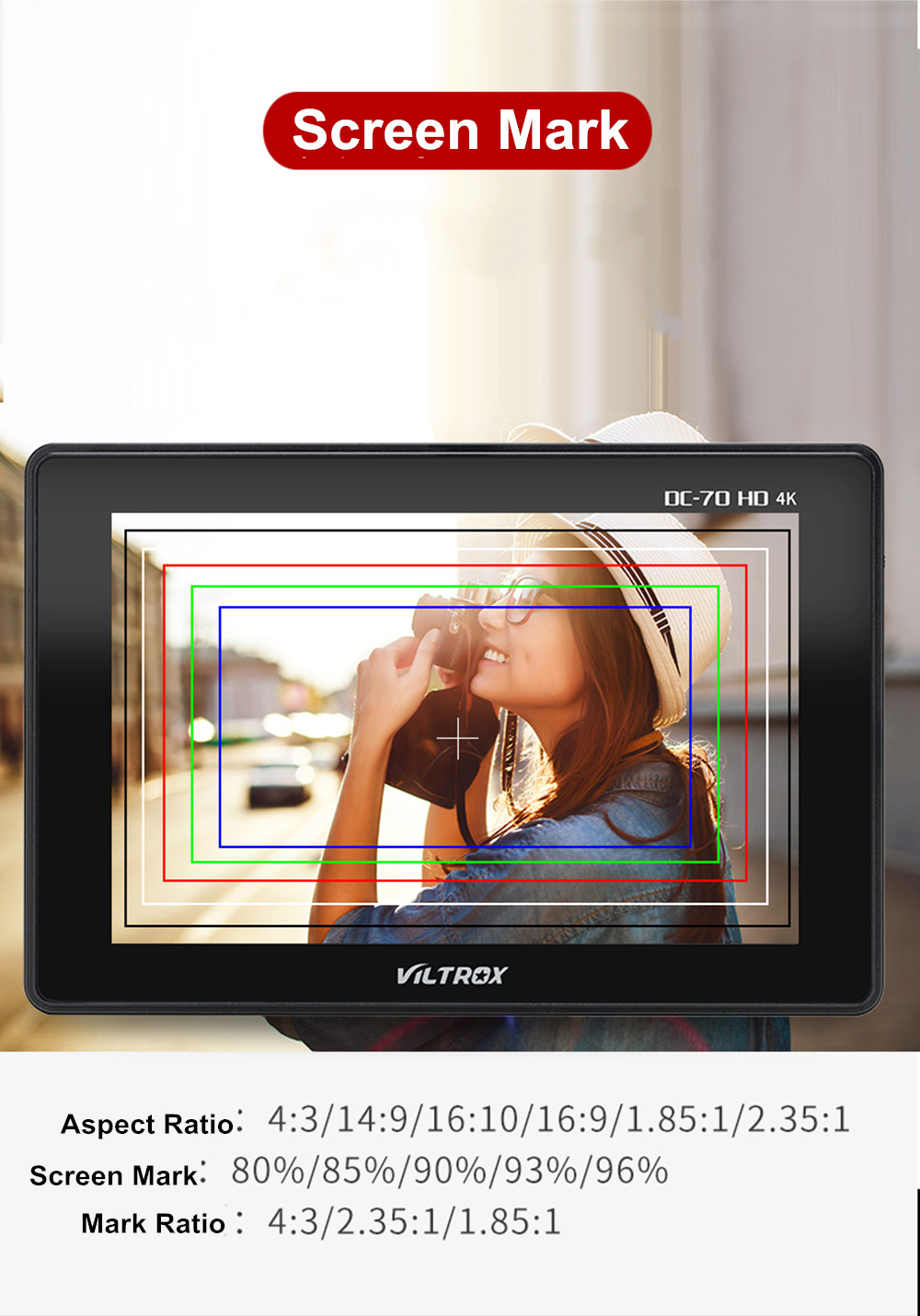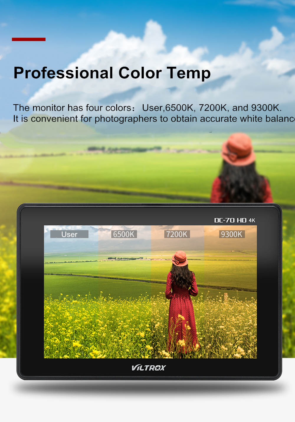 Es kann HDMI-Videoausgang von der Kamera anzeigen, unterstützt 4K UHD 3840 x 2160p Signaleingang.