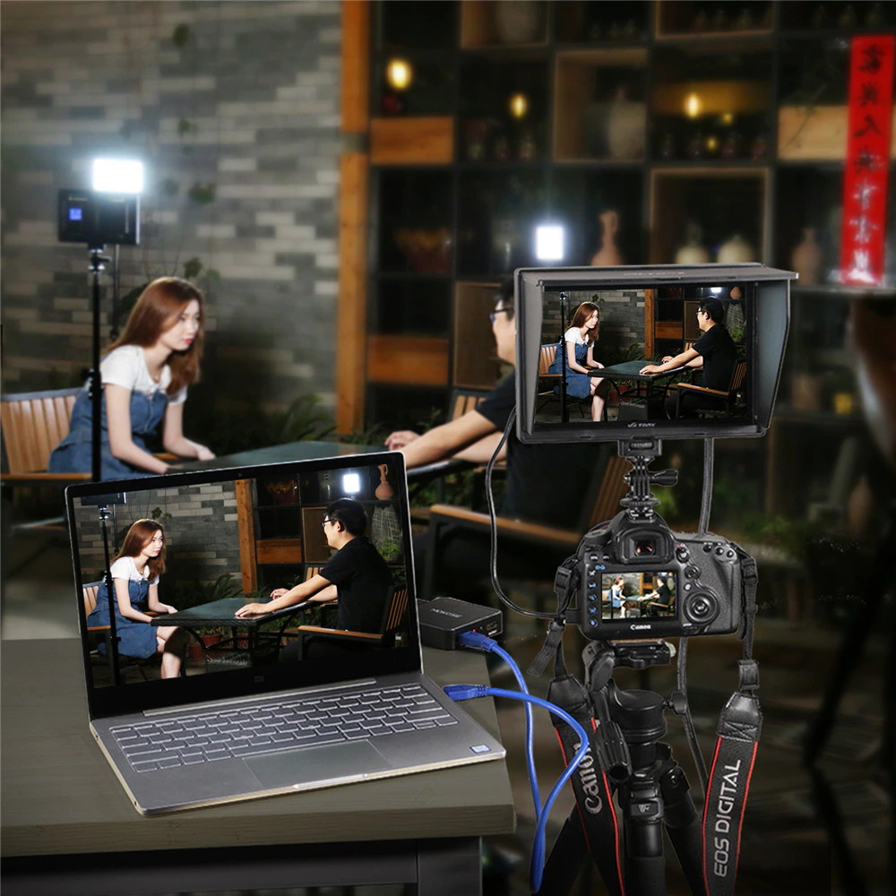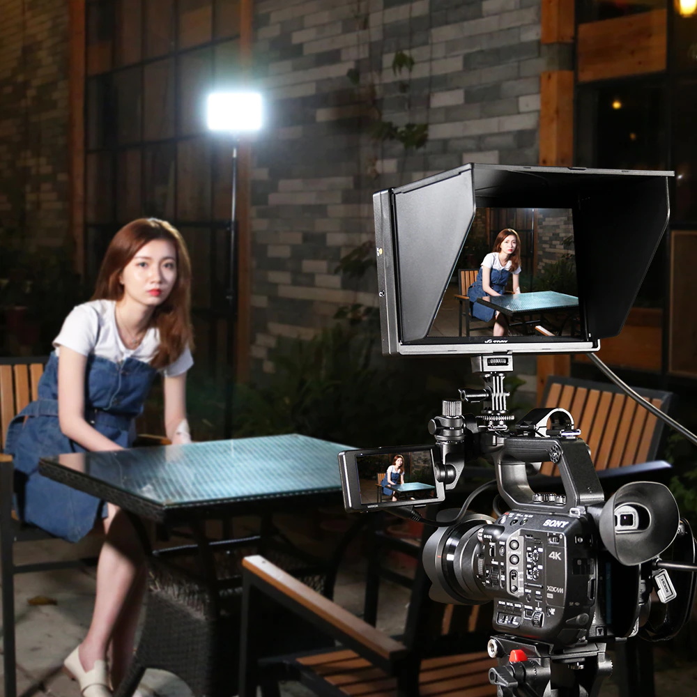 Die ausstattung eine standard heißer schuh adapter, 360° horizontal drehen und 180° oben und unten bewegen, lassen sie ihre monitor aktivitäten frei, zu erfüllen die anforderungen der dreharbeiten aktivitäten in verschiedenen winkeln.