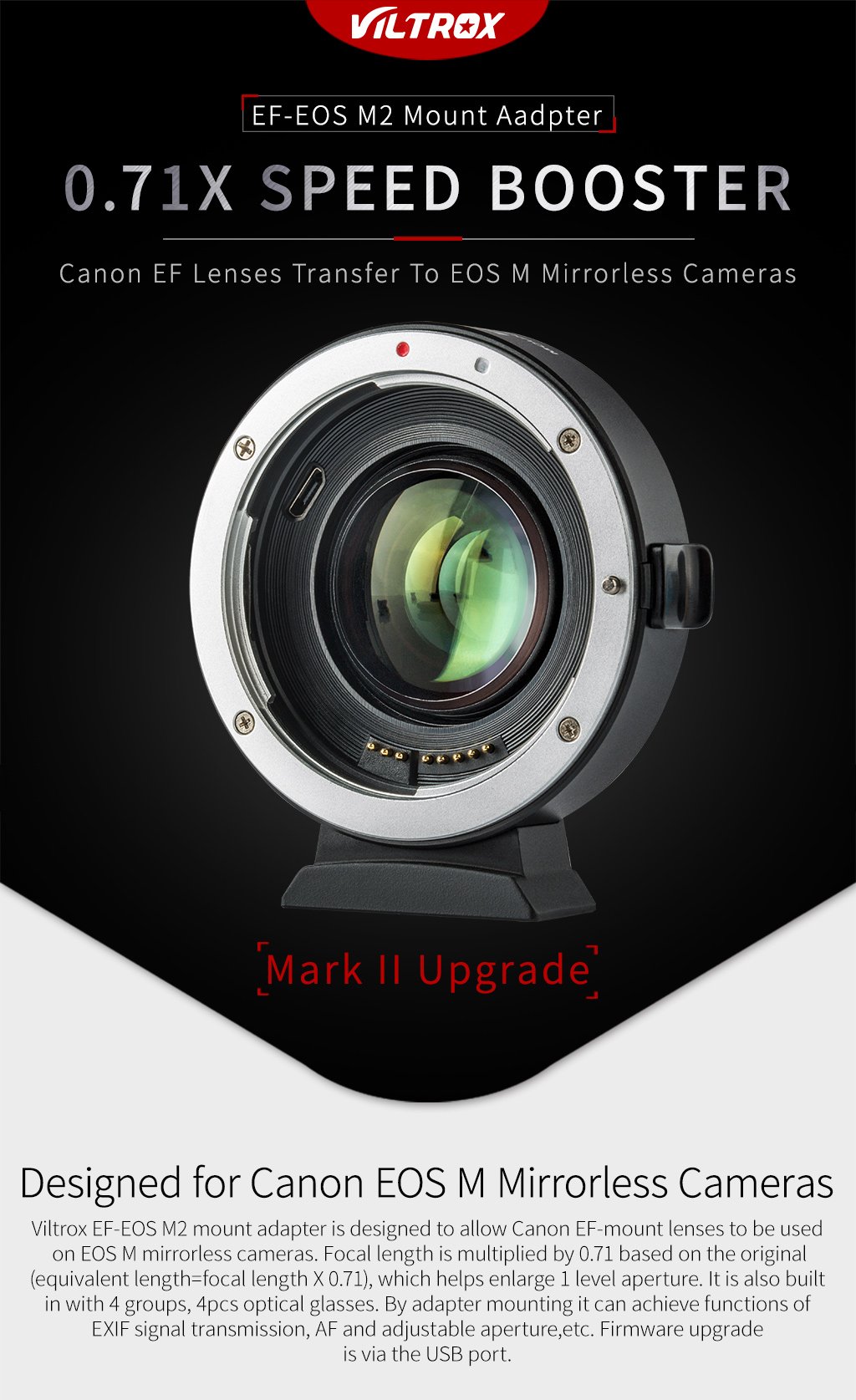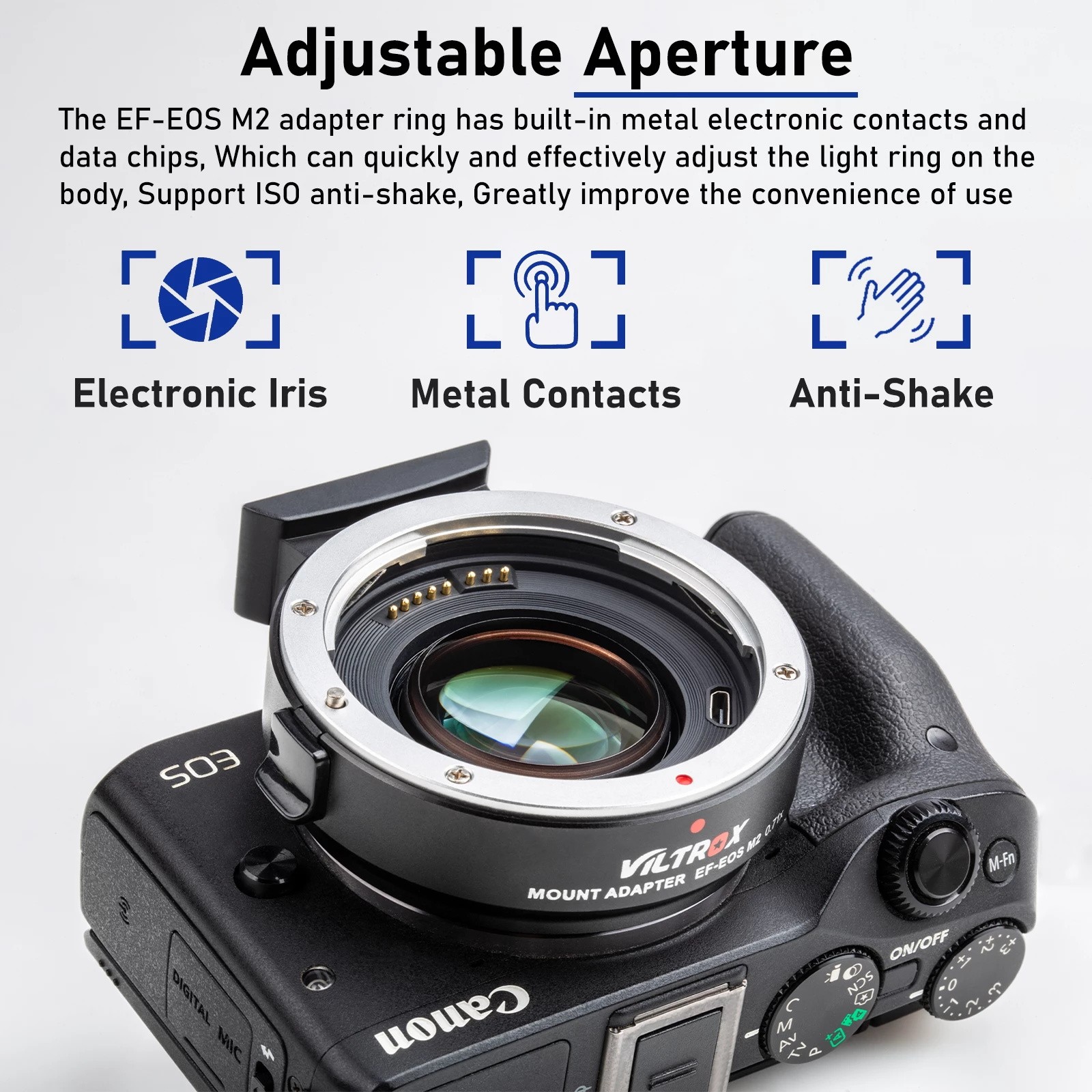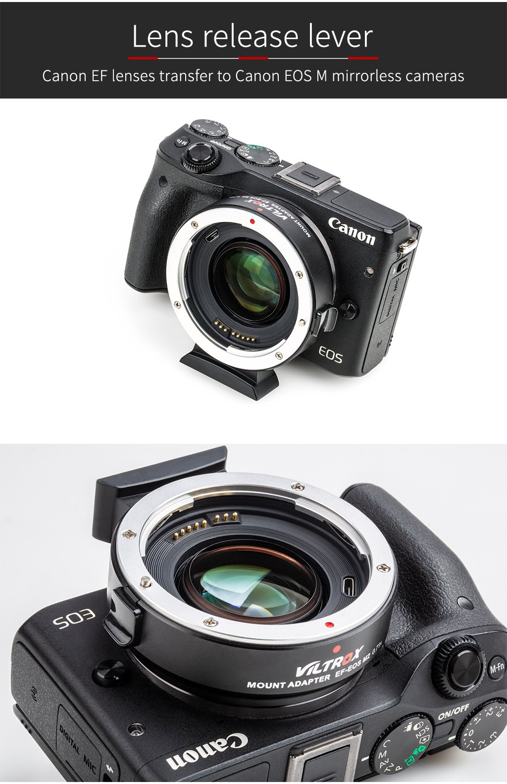 1.Viltrox EF-EOS M2 mount adapter ist entwickelt, um damit Canon EF-mount serie linsen zu verwendet werden auf austauschbar-objektiv digital kameras, die kompatibel mit EF-M objektiv.