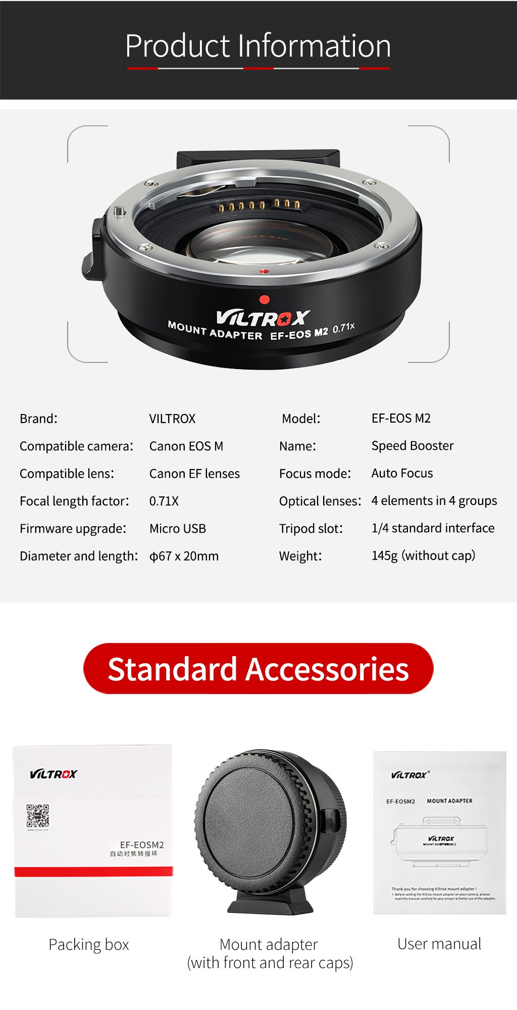 1 x Viltrox EF-EOS M2 Adapter