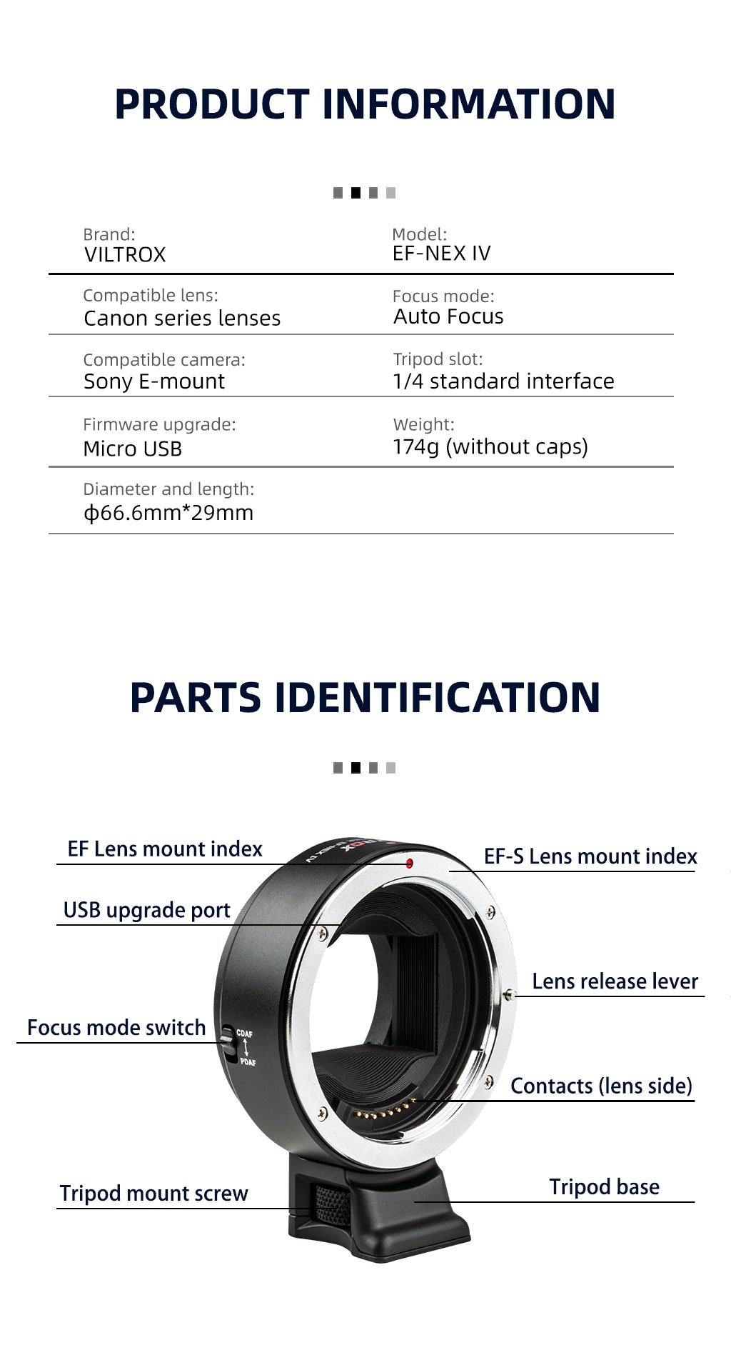 Viltrox EF-NEX IV Auto Fokus Objektiv Adapter für Canon EOS EF EF-S Objektiv Sony E NEX Volle Rahmen A9 AII7 A7RII A7SII A6500 A6300