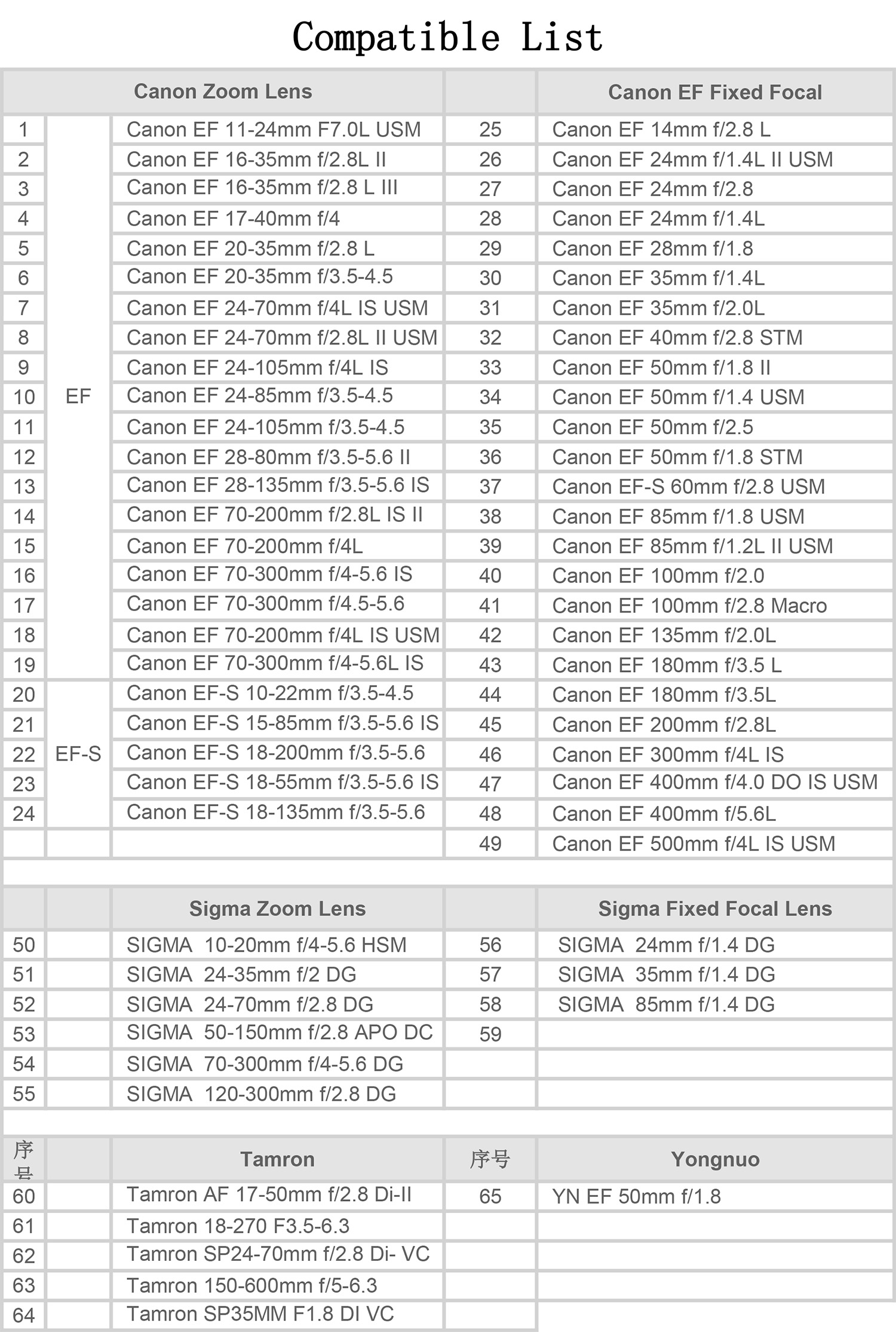 Kompatibles Objektiv: Canon EF / EF-S Serie Objektiv (inkl. Tamron, Sigma, Tokina, Zeiss etc. EF Mount Objektiv)