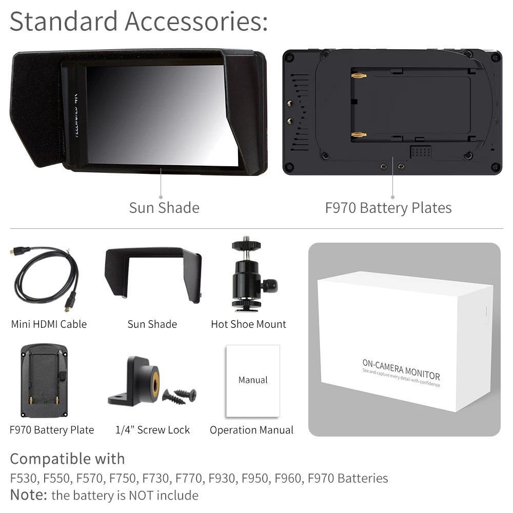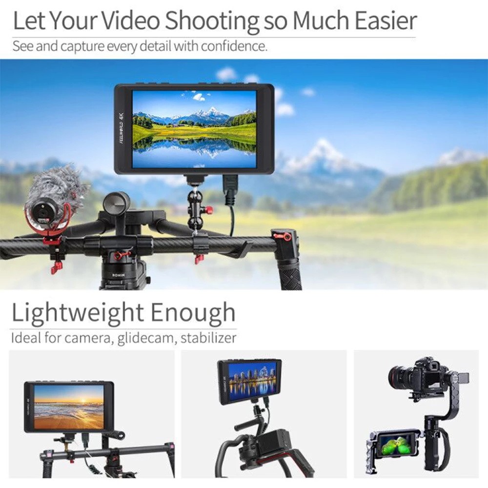 FEELWORLD FW450 liefert erstaunliche bild qualität in eine unglaublich dünne leichte design. Die breite 160 ° betrachtung winkel macht es einfach für mehrere mitglieder der crew zu uhr es an der gleichen zeit.