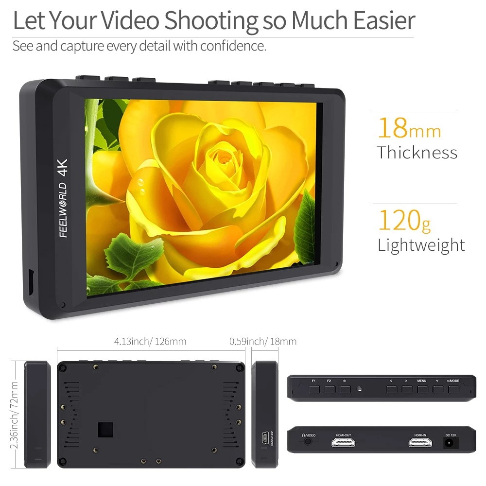 FEELWORLD FW450 ist marmelade verpackt mit eigenschaften in einem kleinen, leichten paket, so ist es einfach zu halten in ihre hände.
