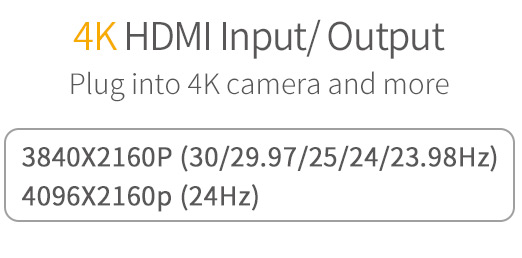4K UHD 3840x2160p (30/29.97/25/24/23,98Hz), 4096x2160p (24Hz)