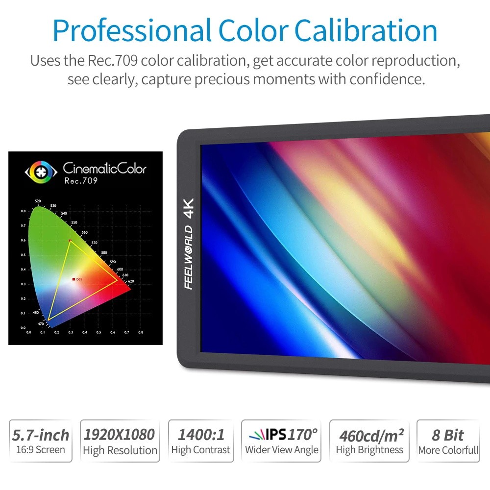 FEELWORLD verwendet die professionelle Rec.709 HD farbe standard, und verwendet die farbe kalibrierung technologie, mit die professionelle instrument kalibrierung an der fabrik, es können erreichen monitor kalibrierung effizient und erhalten genaue farbe reproduktion leicht, tun nicht verzerren die farbe, zeigen das reale bild, wenn sie schießen video.