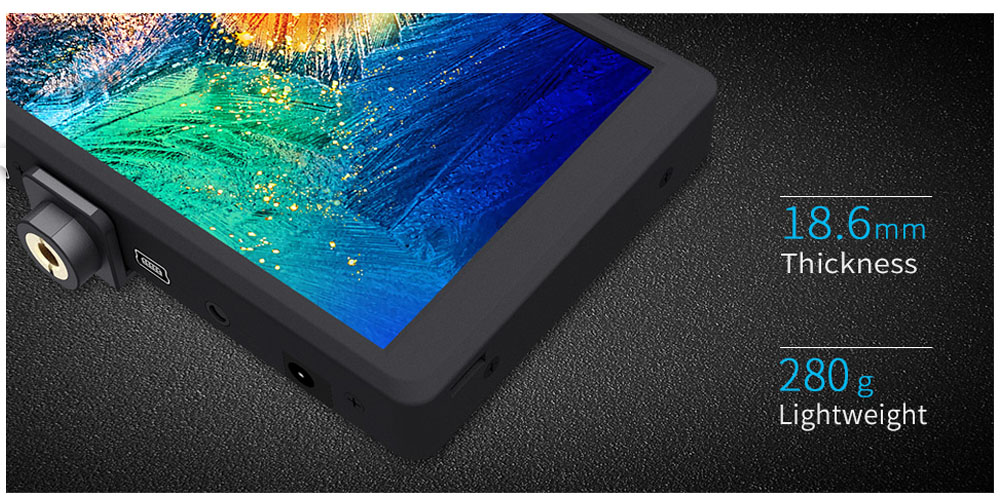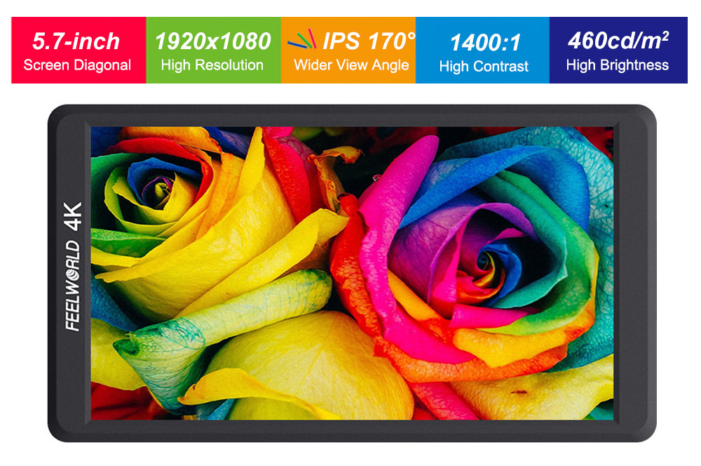 FEELWORLD F570 liefert erstaunliche bild qualität in eine unglaublich dünne leichte design. Die breite 170 ° betrachtung winkel macht es einfach für mehrere mitglieder der crew zu uhr es an der gleichen zeit.