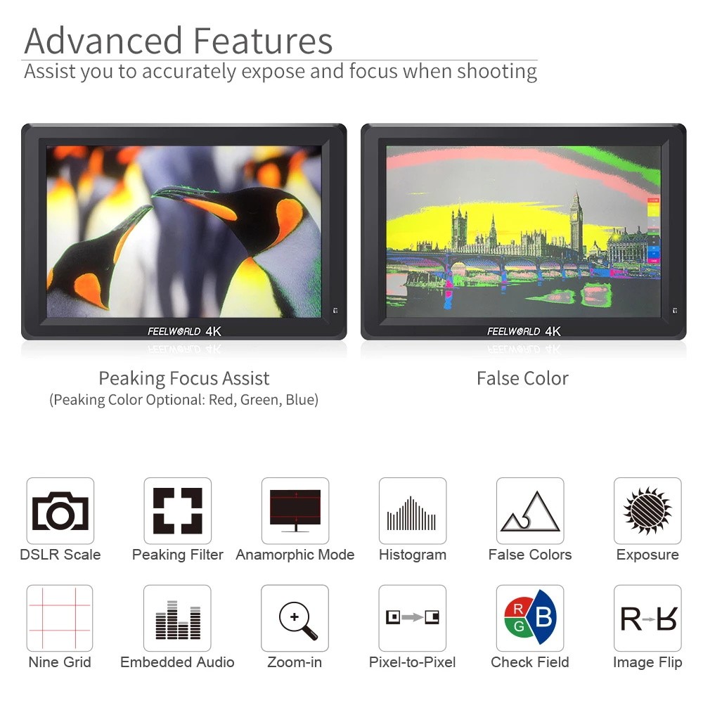 FEELWORLD verwendet die professionelle Rec.709 HD farbe standard, und verwendet die farbe kalibrierung technologie, mit die professionelle instrument kalibrierung an der fabrik, es können erreichen monitor kalibrierung effizient und erhalten genaue farbe reproduktion leicht, tun nicht verzerren die farbe, zeigen das reale bild, wenn sie schießen video.