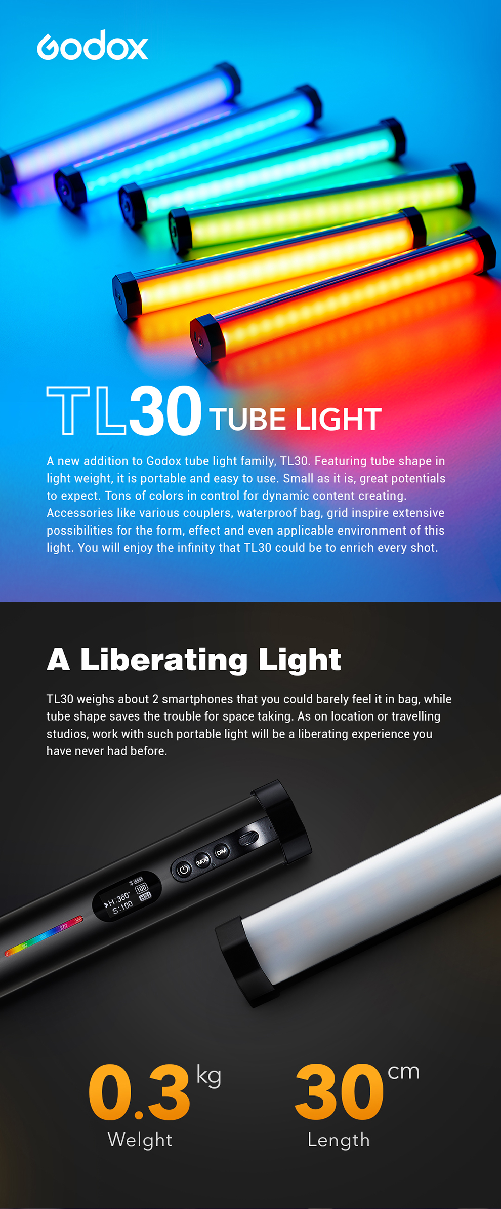 Godox TL30 Pavo Tube Light RGB Farbe Fotografie Licht Handheld Light Stick mit APP-Fernbedienung für Fotos Video Film vlog