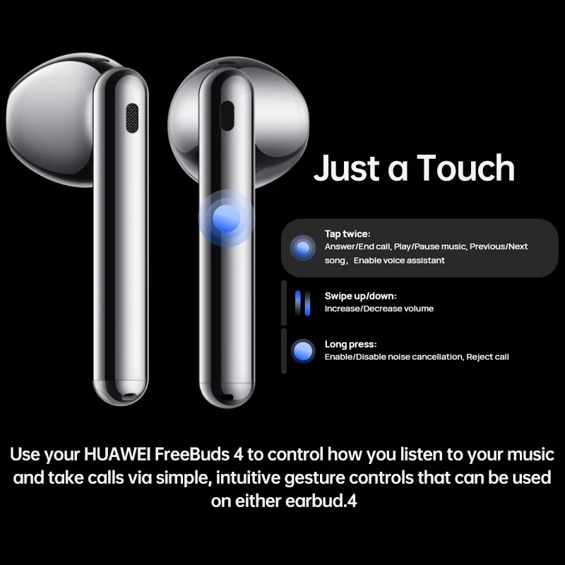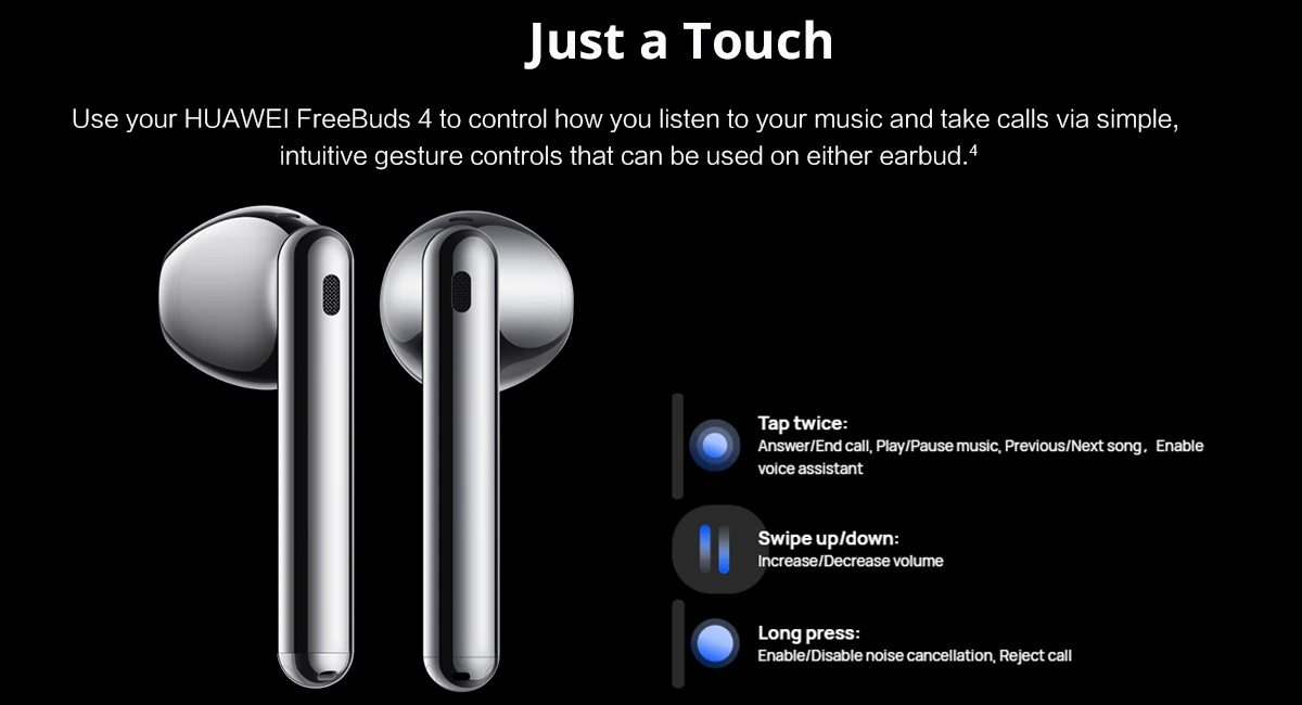 Verwenden ihre HUAWEI FreeBuds 4 zu steuern, wie sie hören sie ihre musik und anrufe nehmen über einfache, intuitive geste steuert, dass können verwendet werden auf entweder earbud.4