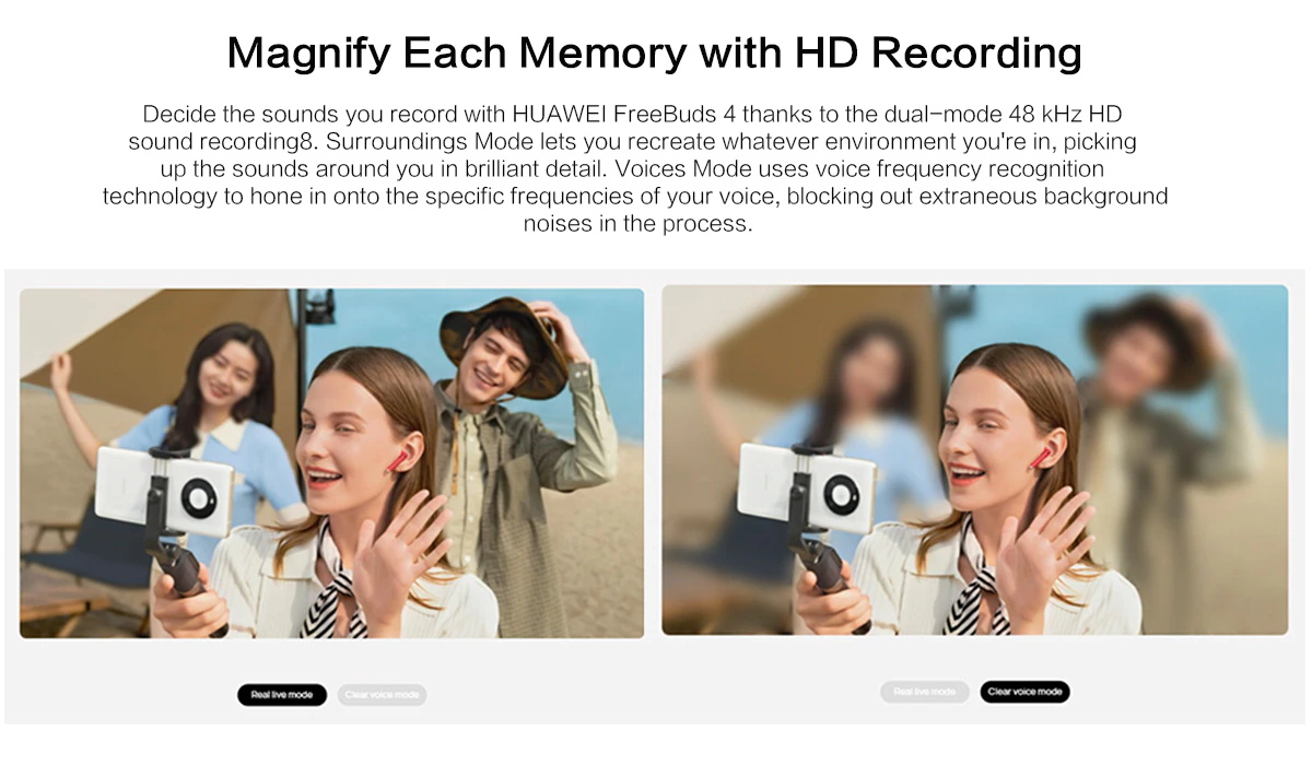 Jedes ohr ist anders. Das ist, warum HUAWEI FreeBuds 4 verwendet adaptive ohr-passenden technologie zu erkennen ihre einzigartige in-ohr form und wie sie tragen die ohrhörer, dann intelligent wählt aus einer vielzahl von geräuschunterdrückung modi zu erreichen optimale low-frequenz sound reduktion.