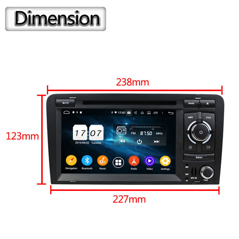 7 Zoll Android 12.0 Autoradio 4GB RAM 64GB ROM Für AUDI A3 (2003-2011) S3 RS3 RNSE-PU Built-in Carplay / Android Auto
