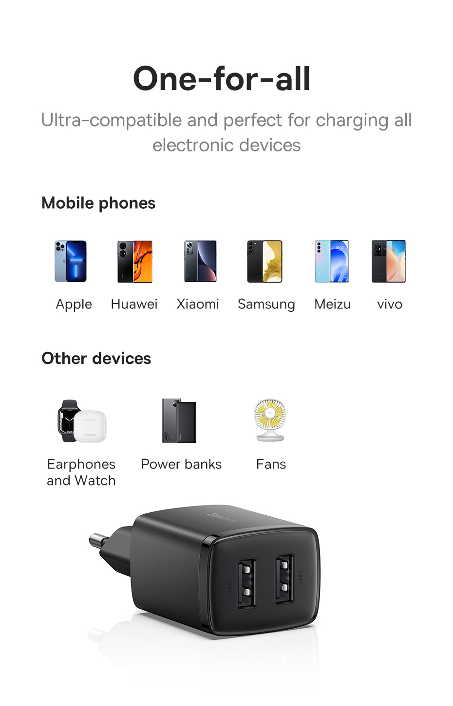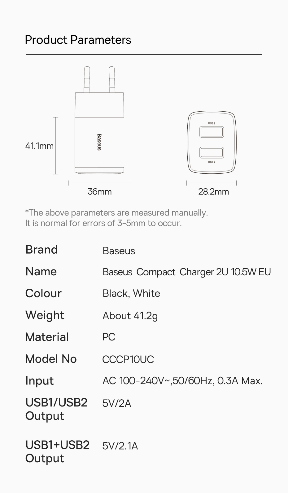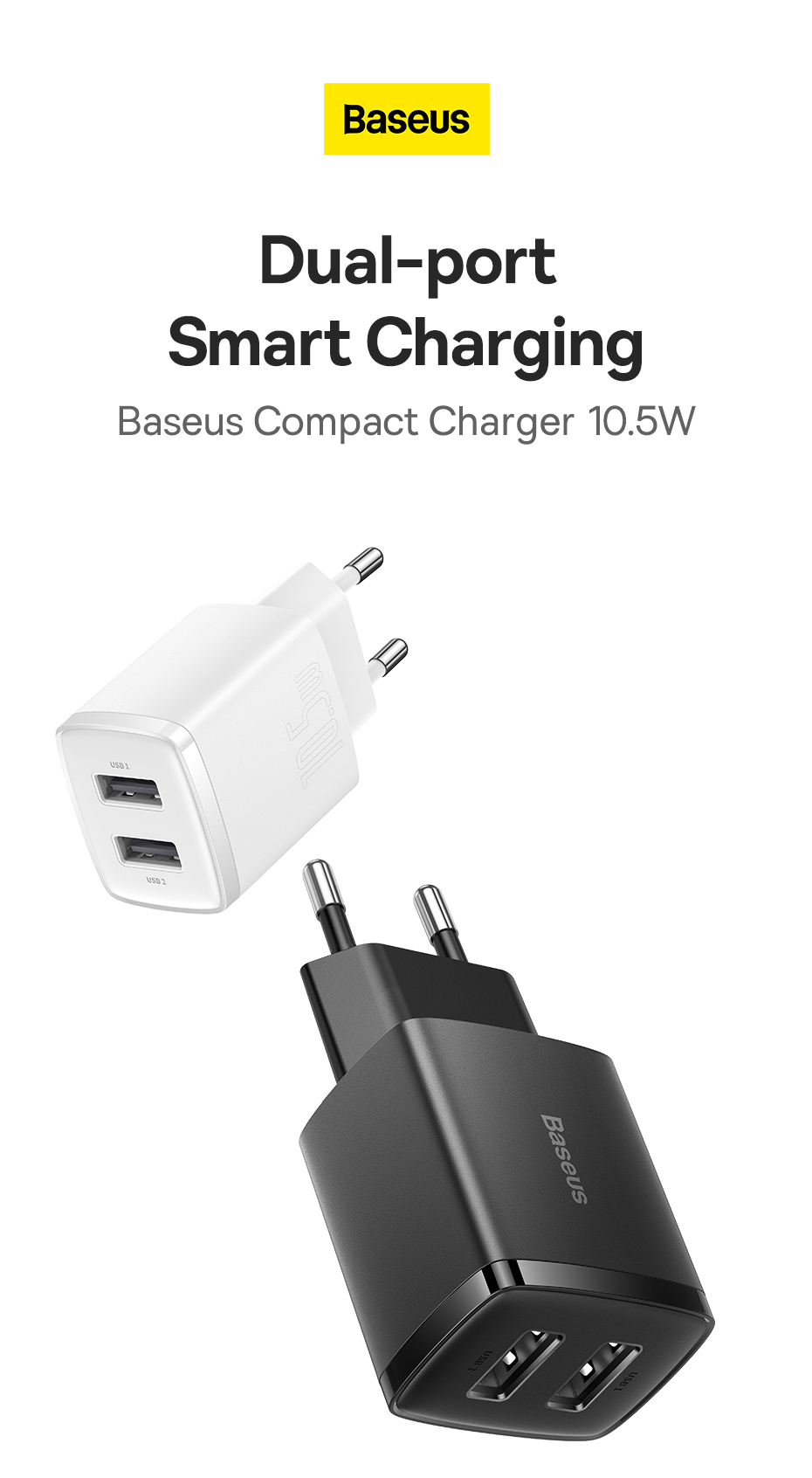 Baseus 10,5W Dual Port USB Mini tragbares Reiseladegerät für iPhone Huawei Xiaomi