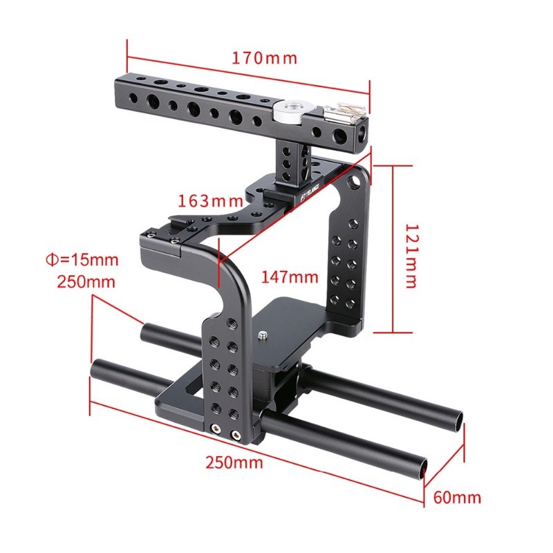 8. die unterseite der käfig ist entworfen mit einem universal 38mm international standard stativ kopf, die können montiert werden auf einem stativ von 38mm kopf direkt.