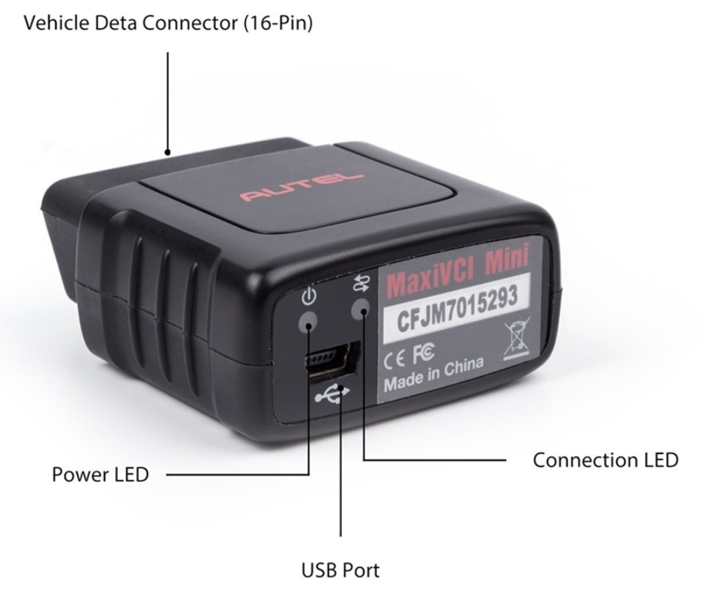 Die MaxiVCI Mini arbeitet auf 12-volt fahrzeug power, die ist erhalten durch die fahrzeug der DLC. Die einheit kräfte auf, wenn es ist mit dem fahrzeug verbunden der DLC.