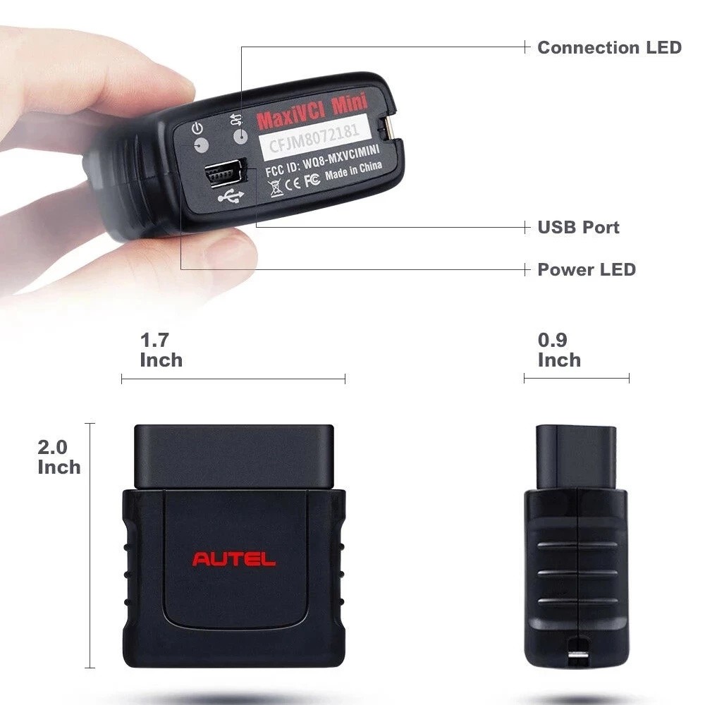 Autel VCI Mini ist entwickelt, um verbinden drahtlos mit die MaxiCom / Maxicheck / MaxiPro und MaxiTPMS Display Tablet, als fahrzeug kommunikation interface (VCI) für fahrzeug daten übertragung. Dank der drahtlose Bluetooth technologie, mit, die sie sind erlaubt zu arbeiten frei um die fahrzeug. Diese interface gerät können kommunizieren mit vehicles' elektronische steuer einheiten (ECUs), eingeführt leistung und geschwindigkeit, dass neu definieren multi-marke diagnose.