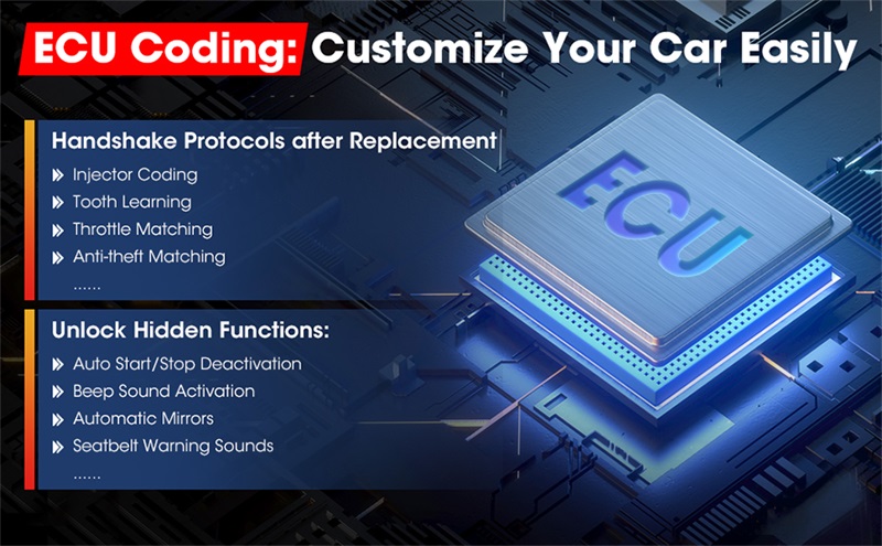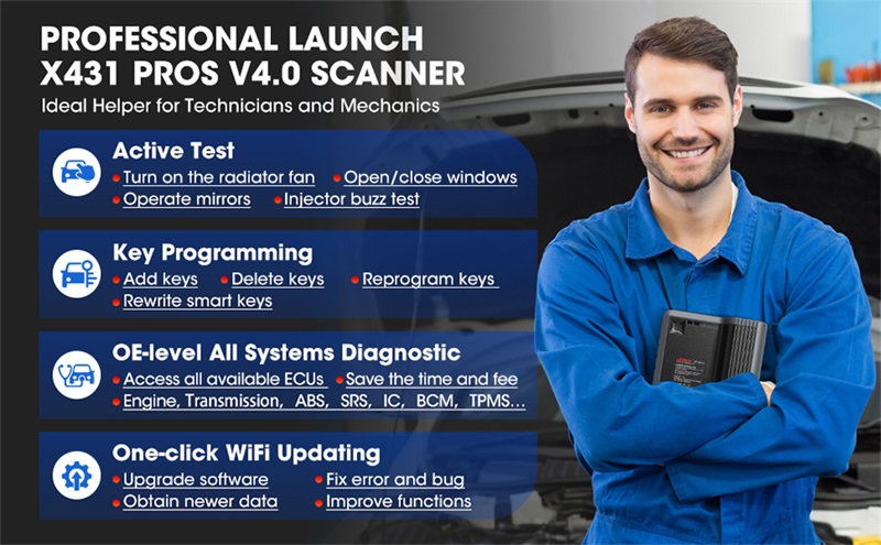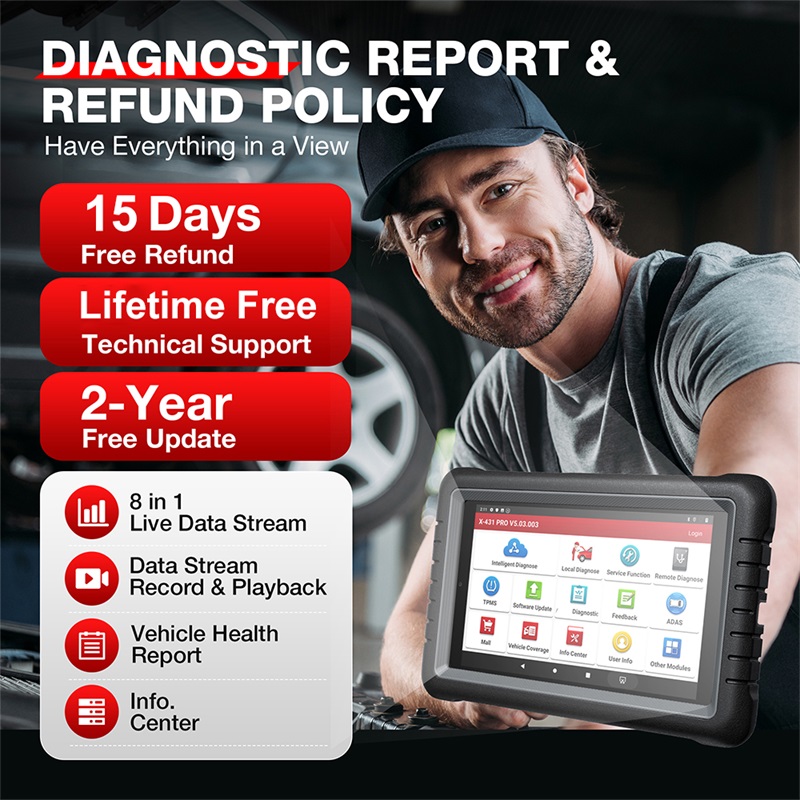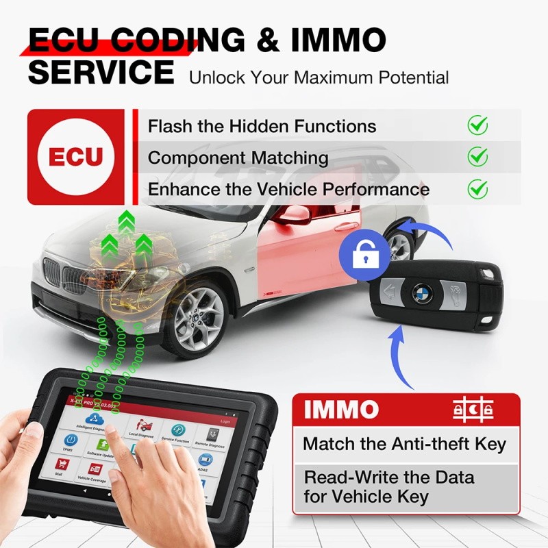 【Bidirektional + ECU-Codierung + über 31 Reset-Dienste + aktiver Test + Anpassung + Initialisierung + Anpassung】: Neben der Betätigung von Magneten und Aktuatoren für aktive Tests. Launch X431 PROS unterstützt auch: Auto VIN Detect, ECU Coding, Adaptation, Matching, Key Programming, Gear/SAS/EPB/TPMS/DPF/IMMO/BMS/ETS/Oil/Brake/AFS/EGR/GEARBOX/SUNROOF/SUS Reset , ABS-Entlüftung, Einspritzdüsencodierung. Gibt Ihnen die Möglichkeit, Reparatur- oder Wartungsarbeiten anhand von Anlernverfahren auf Händlerebene durchzuführen.