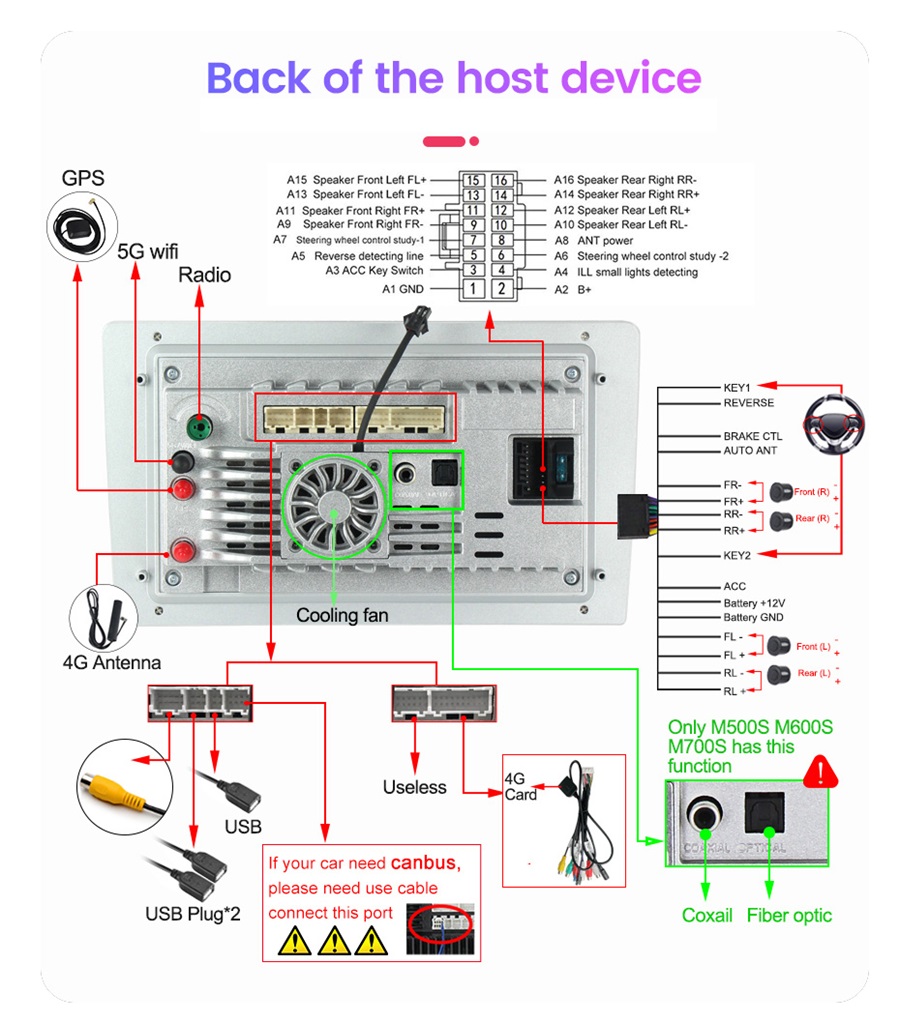 - Position: 3 USB auf dem Rücken, kann als Media/3G/4G/Kamera/DAB+/TPMS/Handy Anschluss