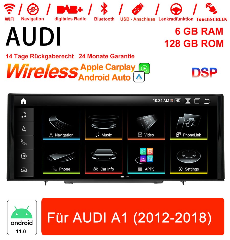 Qualcomm Snapdragon 685 8 Core Android 13.0 4G Autoradio / Multimedia 8GB RAM 128GB ROM Für AUDI A1 2012-2018 Built-in CarPlay / Android Auto