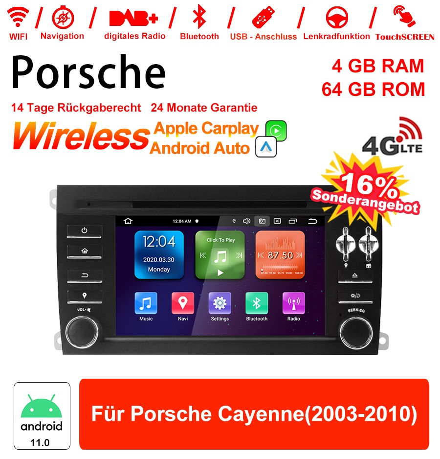 7 Zoll Android 11.0 4G LTE Autoradio / Multimedia 4GB RAM 64GB ROM Für Porsche Cayenne(2003-2010)