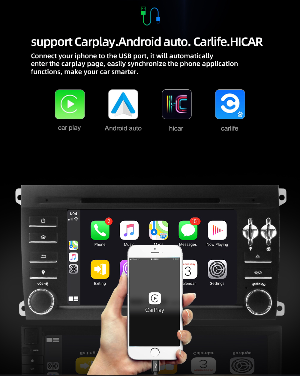 - Mirror Link Funktion: Ja, support Mirror Link für iphone und Android Smartphone