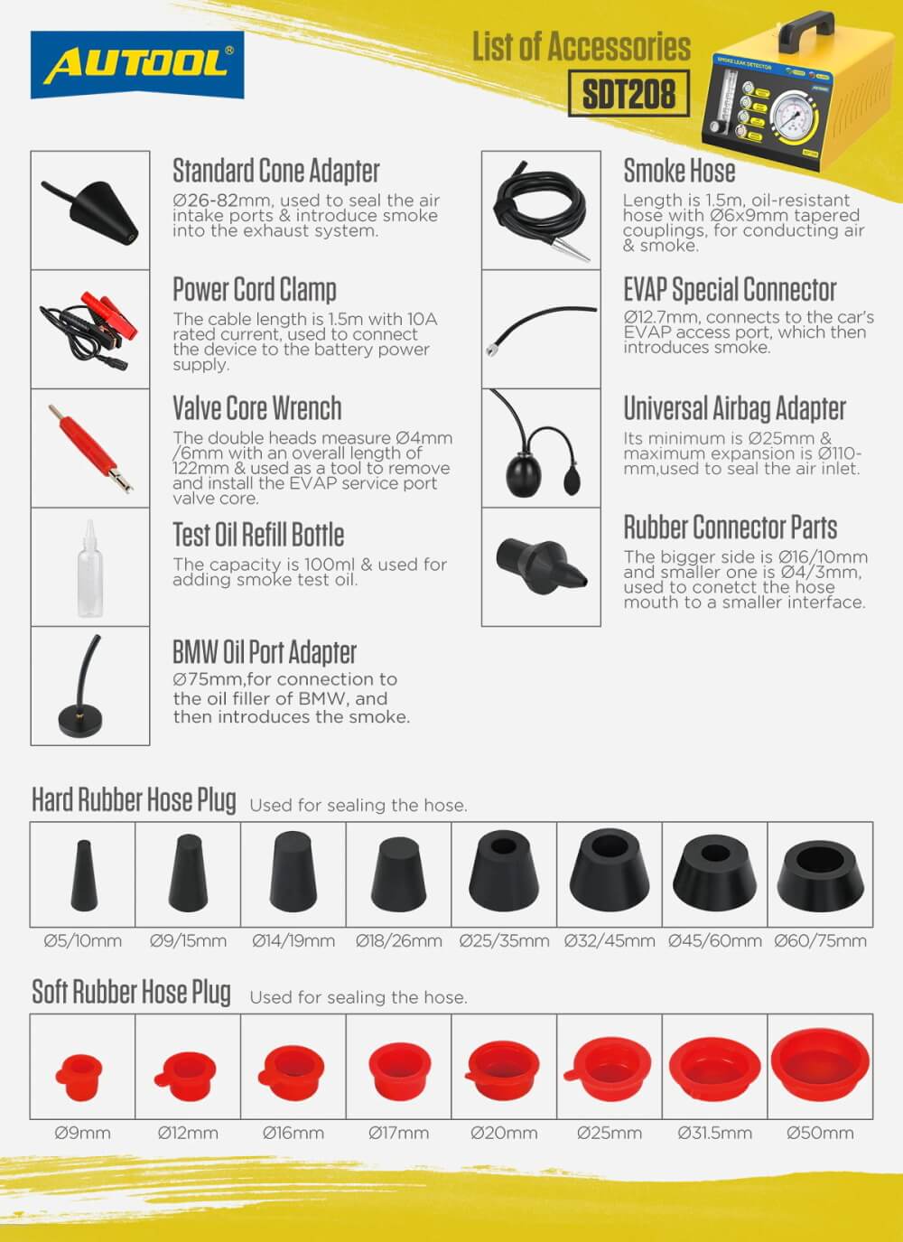 AUTOOL SDT 208 Auto Rauch Leck Detektor Eigenschaften: